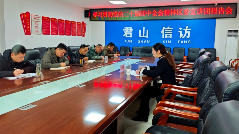 宣講會(huì)上,呂荷靜緊密圍繞學(xué)習(xí)貫徹習(xí)近平總書記在黨的二十屆四中全會(huì)上的重要講話精神和全會(huì)《建議》,闡明了黨的二十屆四中全會(huì)的重大意義,闡釋了“十四五”時(shí)期我國(guó)發(fā)展取得的重大成就和“十五五”時(shí)期經(jīng)濟(jì)社會(huì)發(fā)展環(huán)境,解讀了“十五五”時(shí)期經(jīng)濟(jì)社會(huì)發(fā)展的指導(dǎo)方針、主要目標(biāo)、戰(zhàn)略任務(wù)、重大舉措和根本保證。報(bào)告緊密結(jié)合君山實(shí)際,對(duì)于準(zhǔn)確把握黨中央對(duì)經(jīng)濟(jì)社會(huì)發(fā)展特別是推進(jìn)信訪工作法治化、推動(dòng)矛盾糾紛化解等一系列重大部署,提供了精準(zhǔn)指導(dǎo)。
