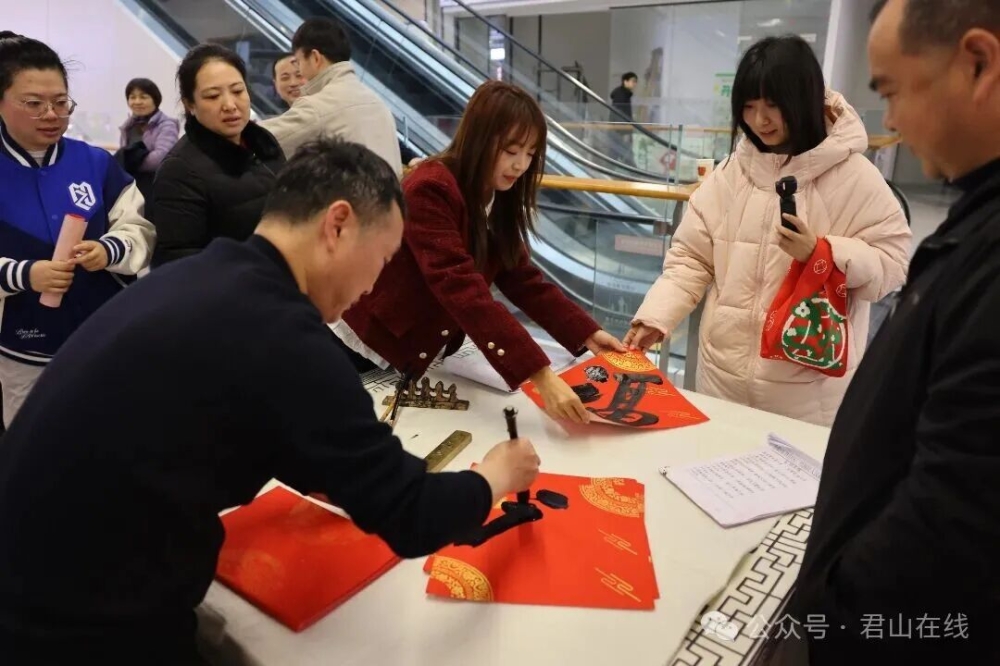 活動現(xiàn)場開展了“墨香傳福春聯(lián)義寫”活動,邀請6位書法家現(xiàn)場為群眾書寫并贈送馬年主題春聯(lián)與福字,居民可自選內(nèi)容或定制個性化祝福。同時,新華書店·君山店設(shè)置了春節(jié)民俗、經(jīng)典名著、少兒繪本等五大主題圖書展區(qū),并推出“新春讀書打卡”活動,參與即可獲贈小禮品。