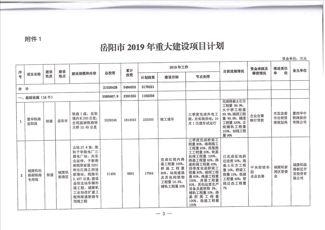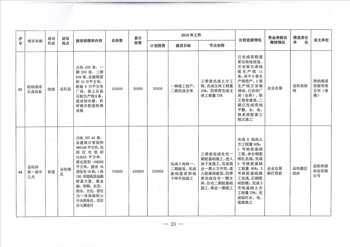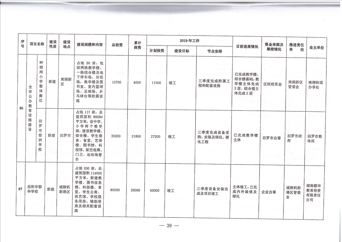 岳陽(yáng)市2019年重大建設(shè)項(xiàng)目計(jì)劃表