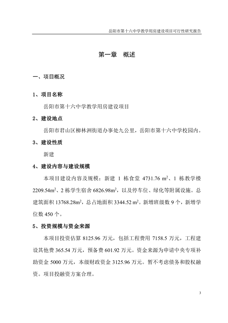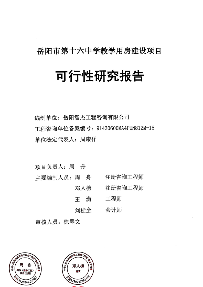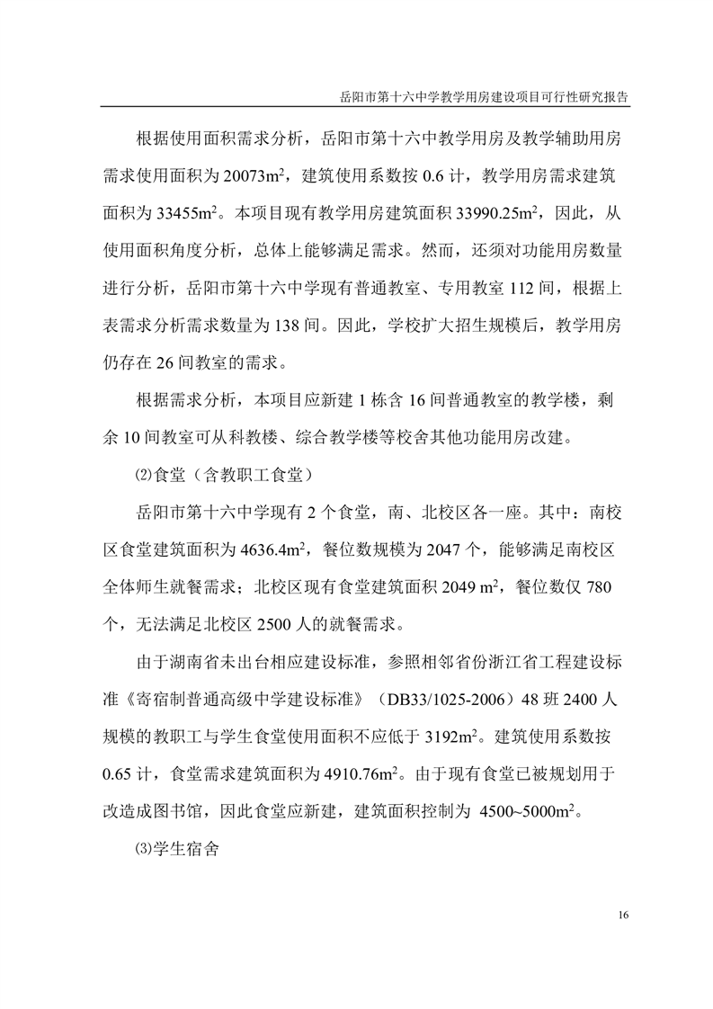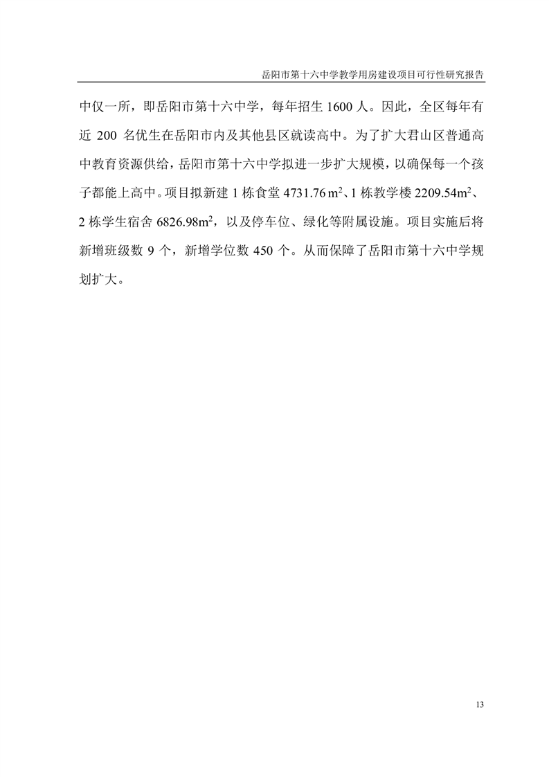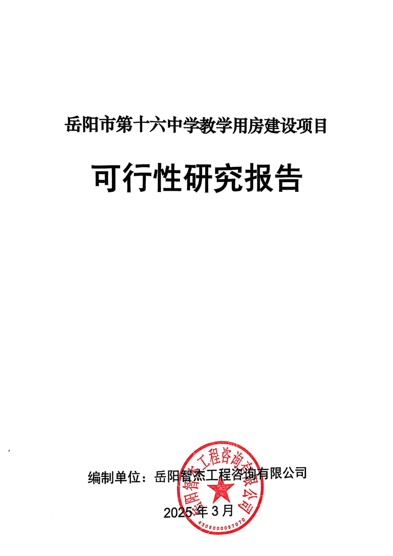 岳陽市第十六中學(xué)教學(xué)用房建設(shè)項(xiàng)目可行性研究報(bào)告
