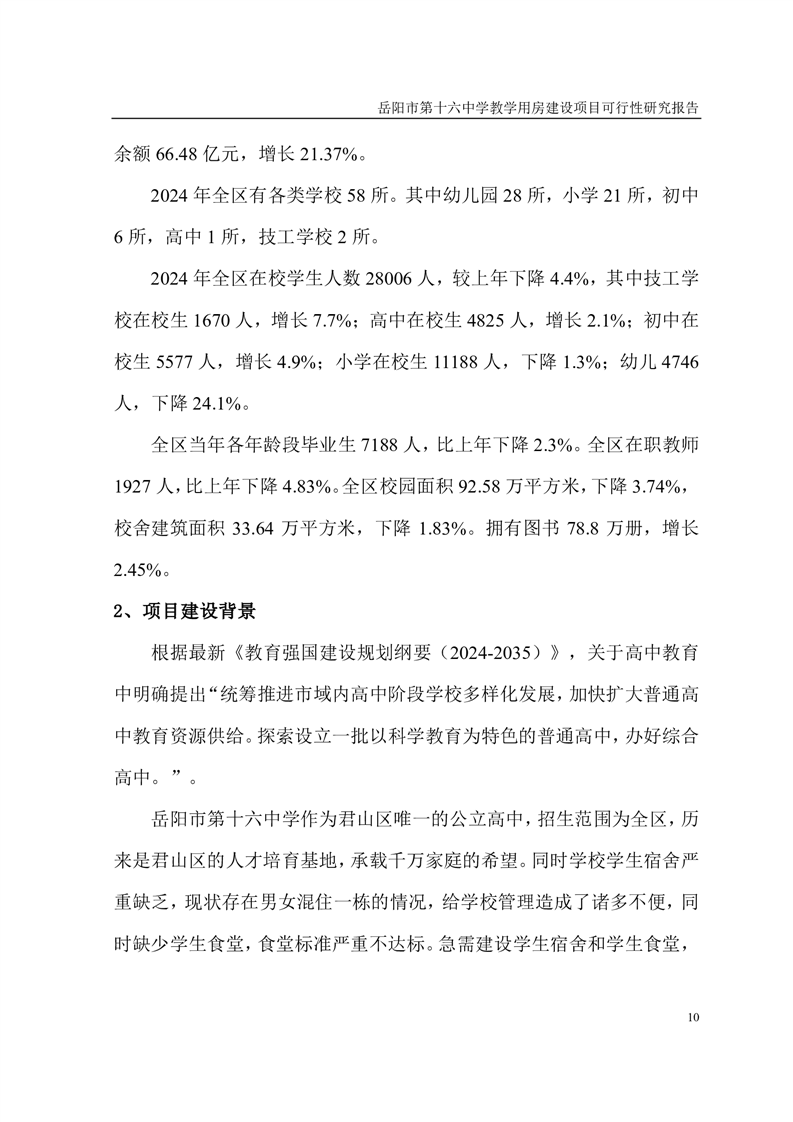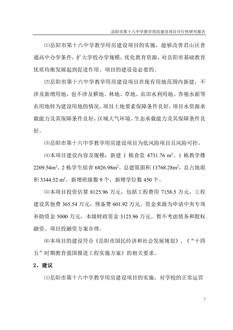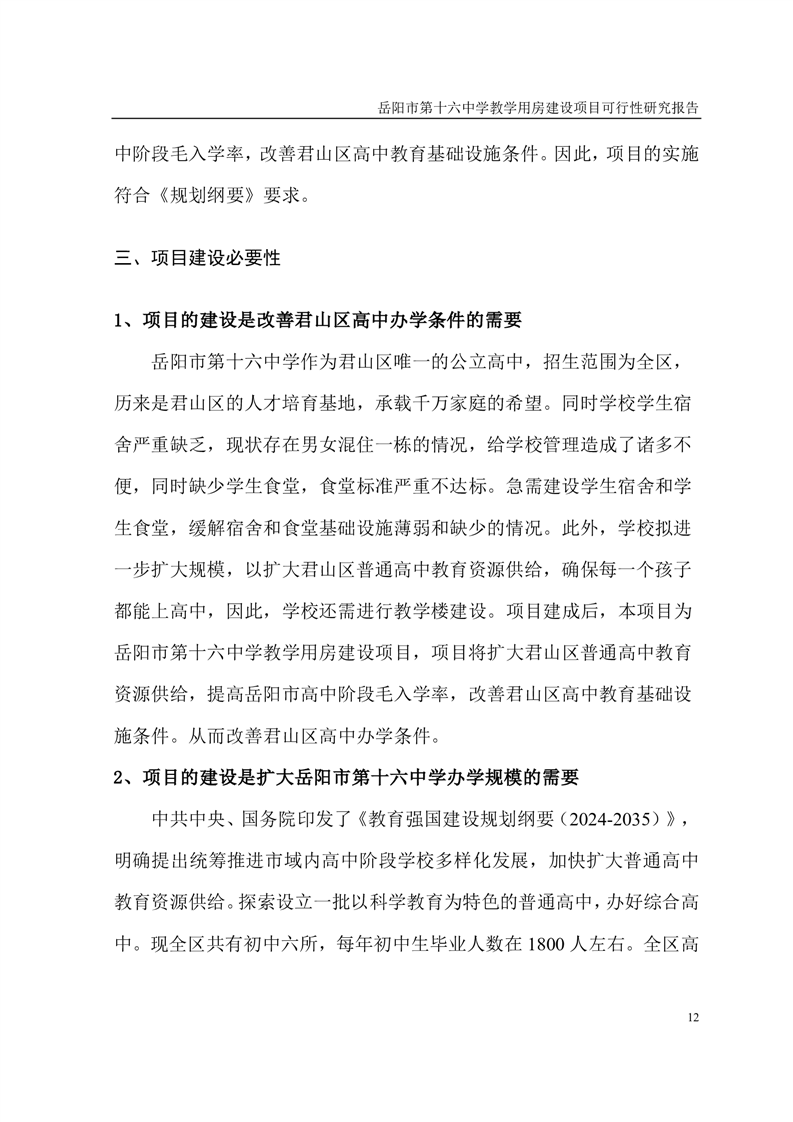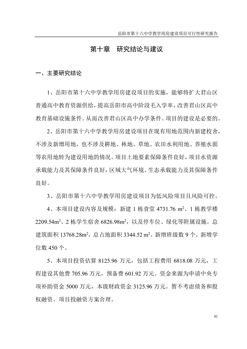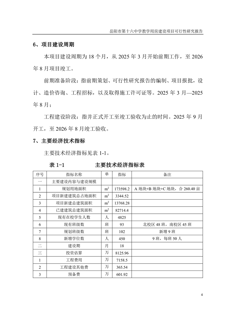 岳陽市第十六中學(xué)教學(xué)用房建設(shè)項(xiàng)目可行性研究報(bào)告