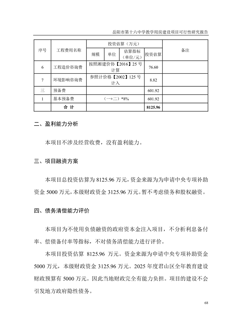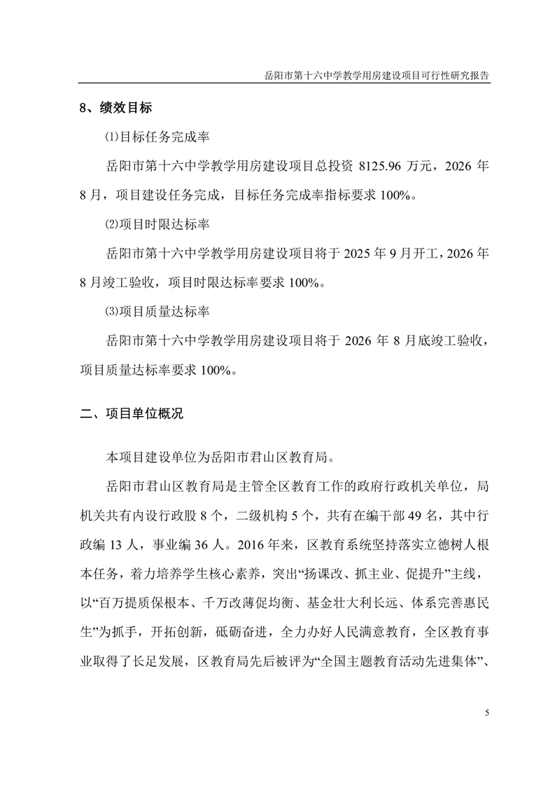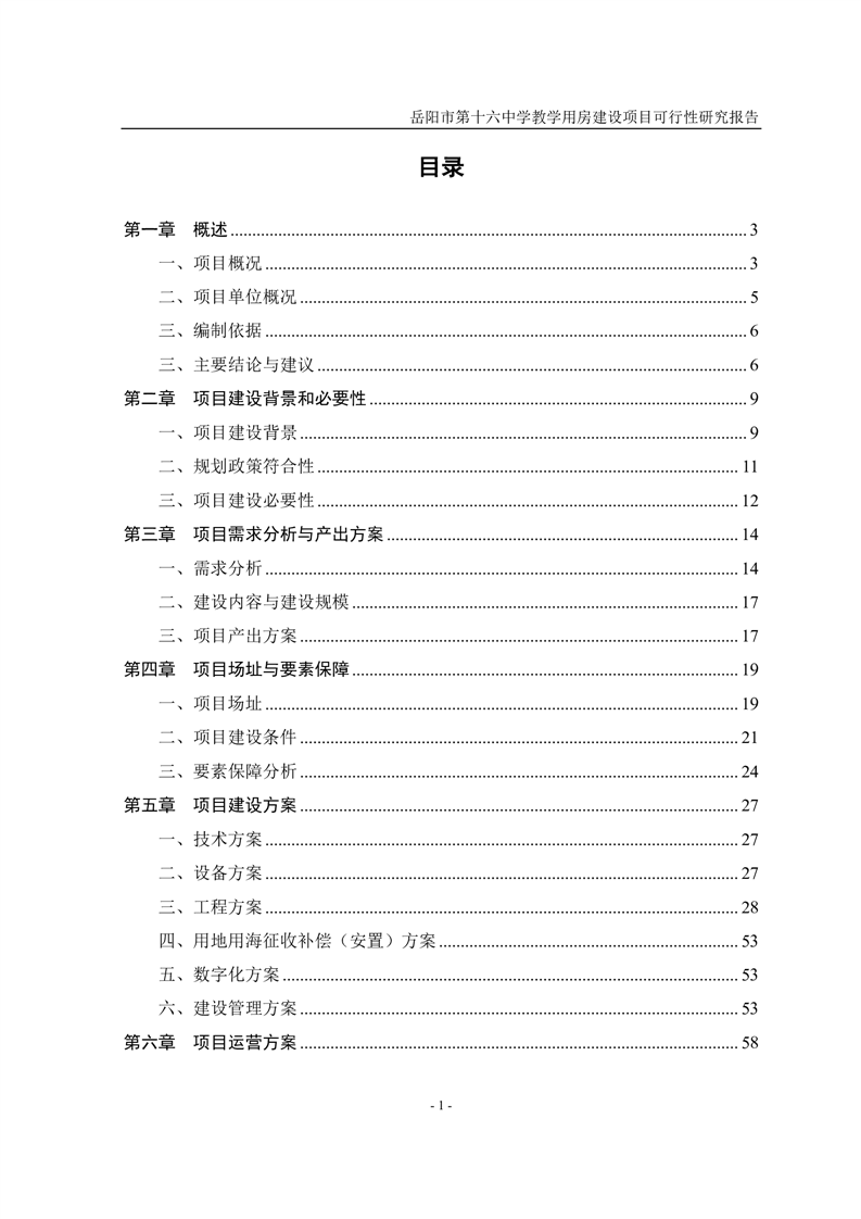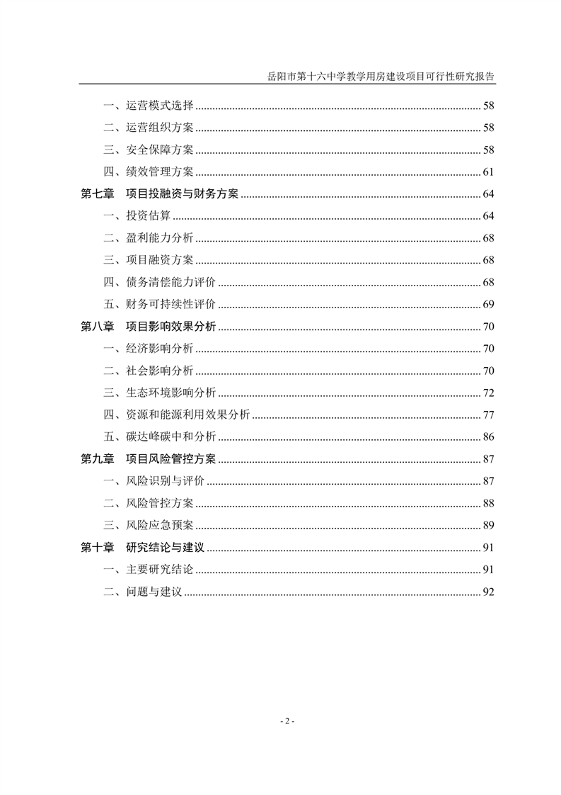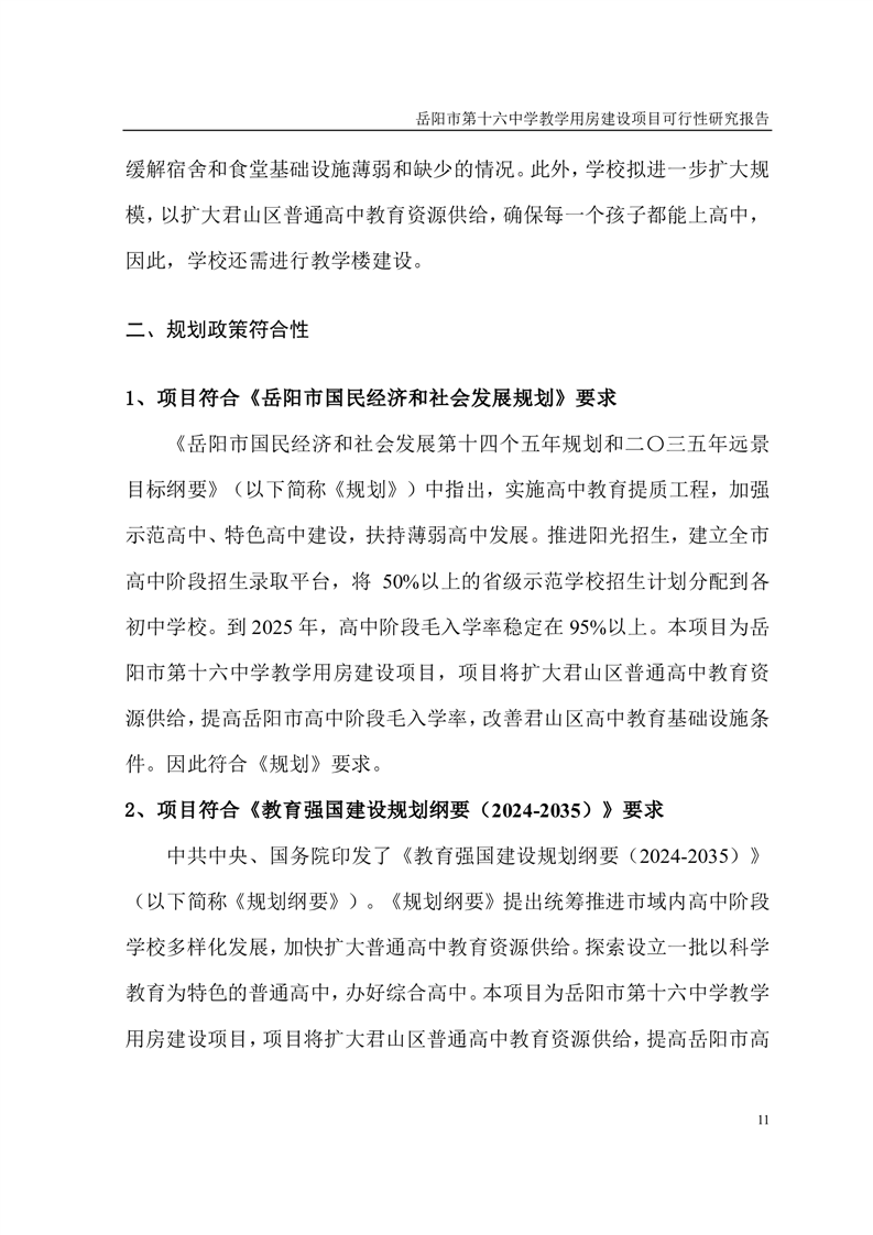 岳陽市第十六中學(xué)教學(xué)用房建設(shè)項(xiàng)目可行性研究報(bào)告