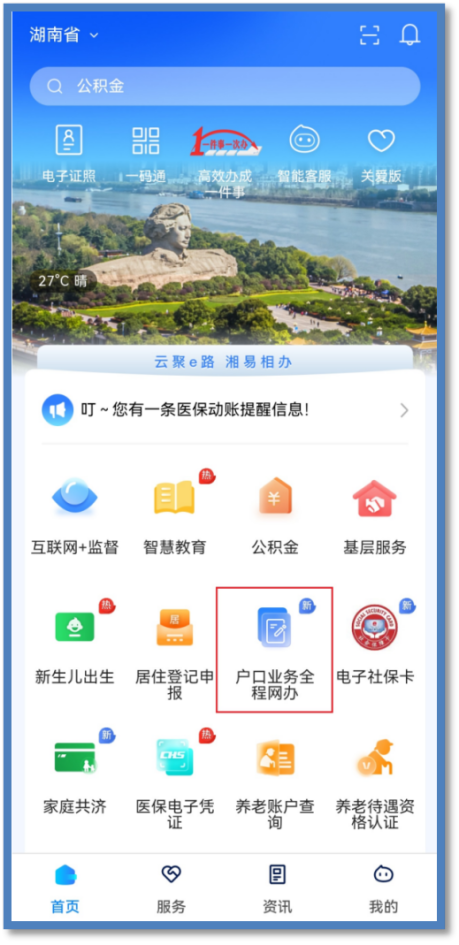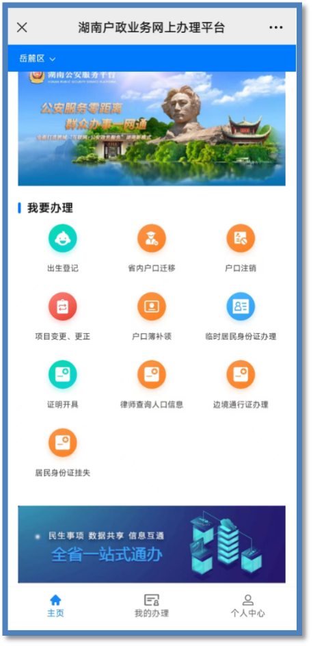 一、湖南戶籍居民可微信關(guān)注“湖南公安服務(wù)平臺(tái)”公眾號(hào),注冊(cè)并實(shí)人認(rèn)證登錄,點(diǎn)擊“微警務(wù)”,進(jìn)入平臺(tái)首頁,在熱點(diǎn)應(yīng)用欄中選擇“戶口業(yè)務(wù)全程網(wǎng)辦”,或微信登錄省政府“湘易辦”APP首頁,點(diǎn)擊“戶口業(yè)務(wù)全程網(wǎng)辦”,進(jìn)入湖南戶政業(yè)務(wù)網(wǎng)上辦理平臺(tái),在“我要辦理”菜單中選擇要申辦的業(yè)務(wù)類型,閱讀網(wǎng)辦須知,填寫相關(guān)信息,拍照上傳證明材料,提交辦件申請(qǐng)。