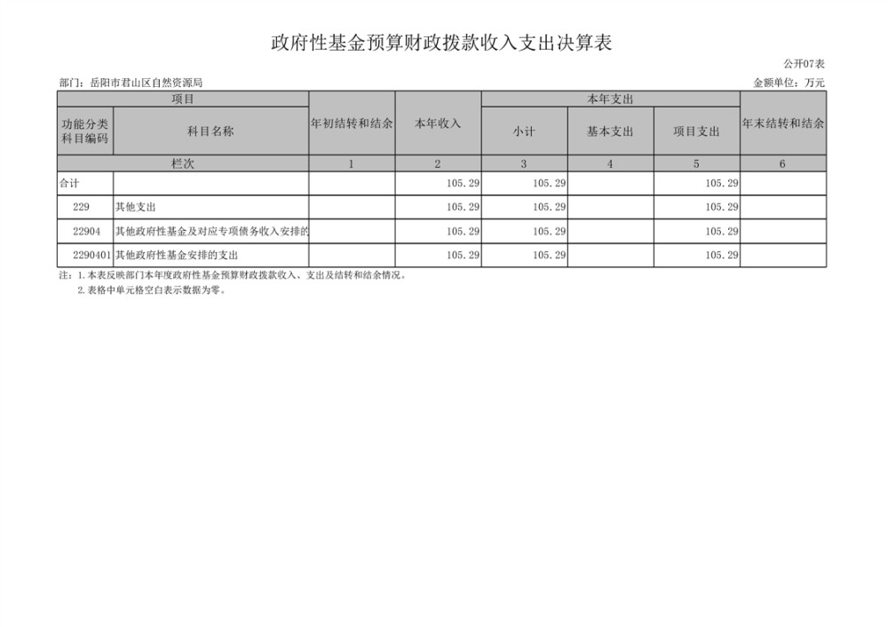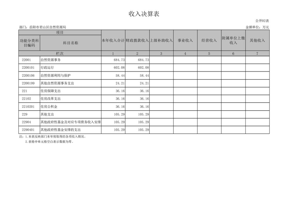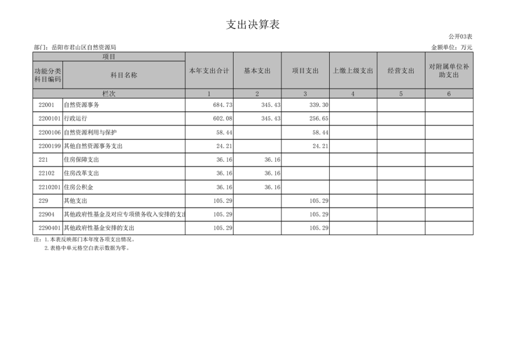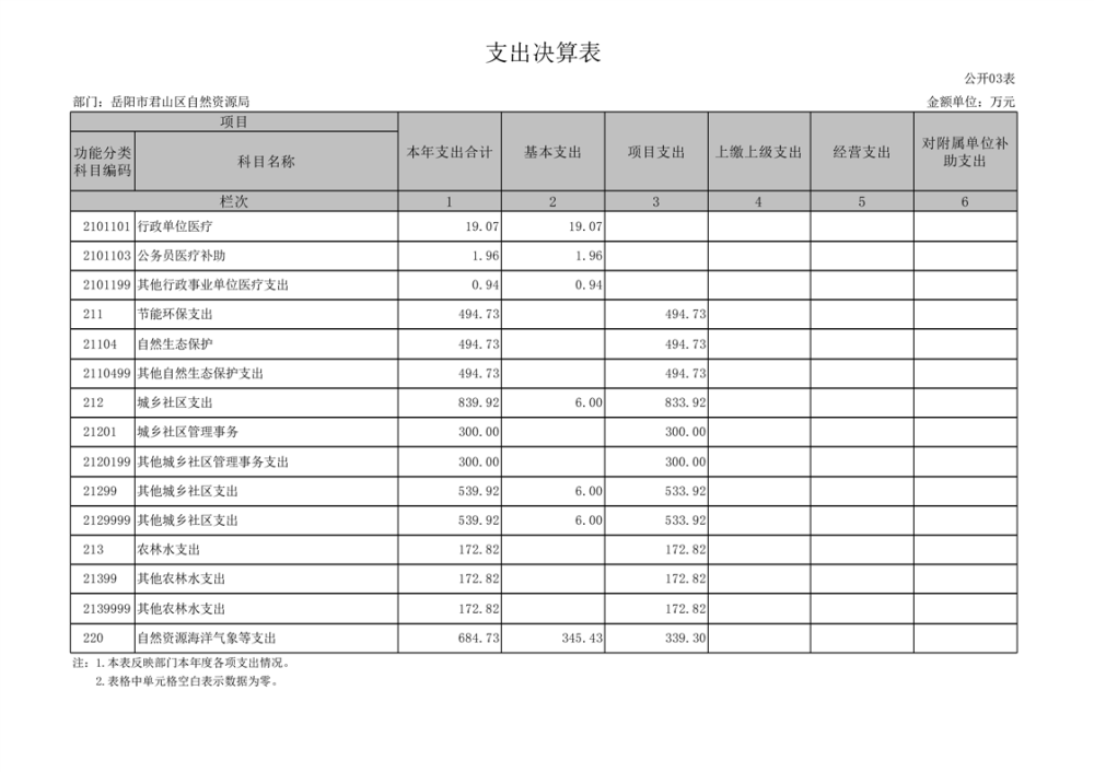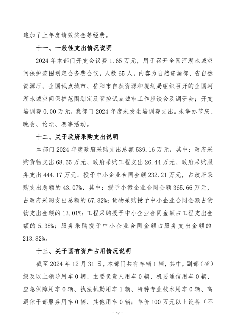 2024年度岳陽市君山區(qū)自然資源局部門決算公開