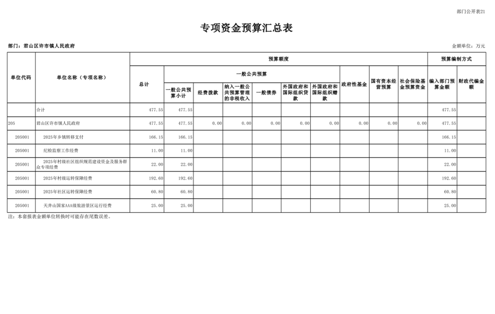 2025年君山區(qū)許市鎮(zhèn)人民政府部門預算公開
