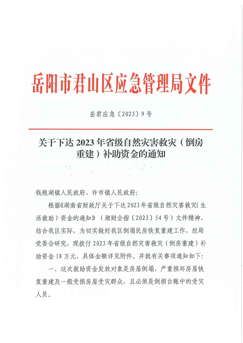 轉(zhuǎn)發(fā)關(guān)于下達(dá)2023年恢復(fù)重建補(bǔ)助資金的通知(9號(hào))