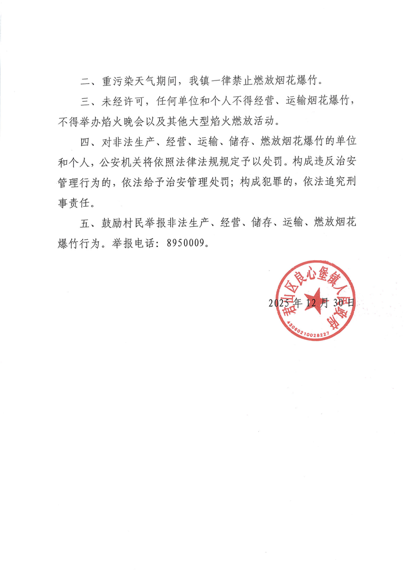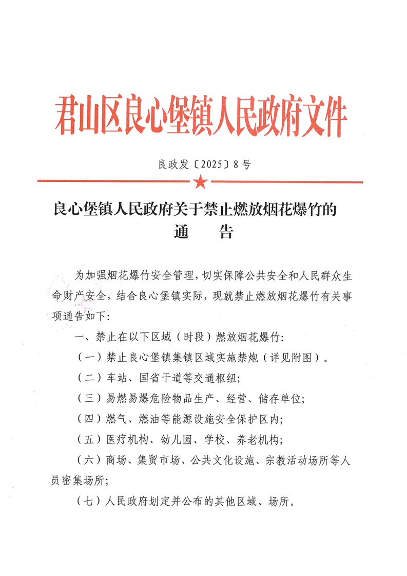良心堡鎮(zhèn)人民政府關(guān)于禁止燃放煙花爆竹的通告