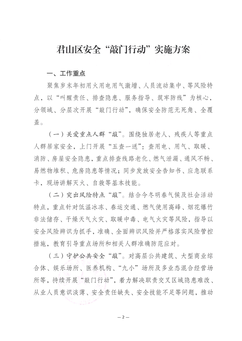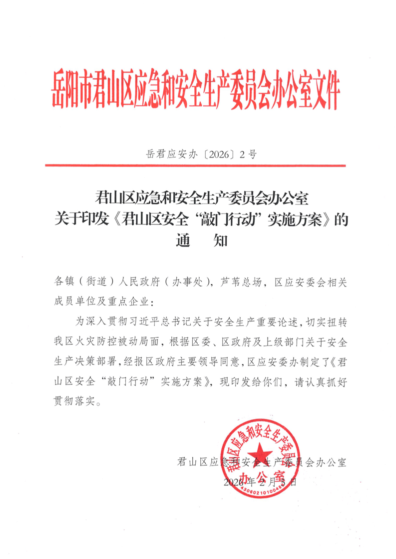 關(guān)于印發(fā)《君山區(qū)安全“敲門行動(dòng)”實(shí)施方案》的通知