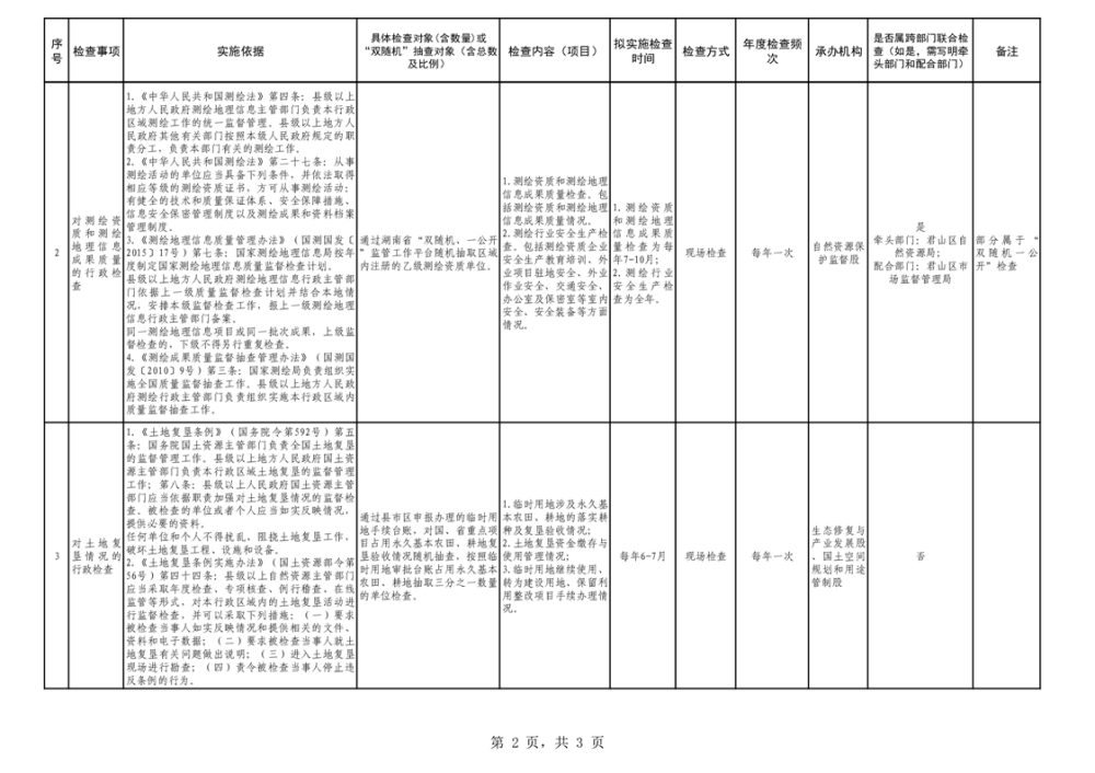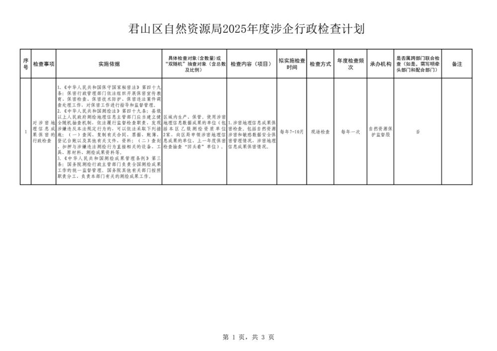 君山區(qū)自然資源局2025年度涉企行政檢查計(jì)劃