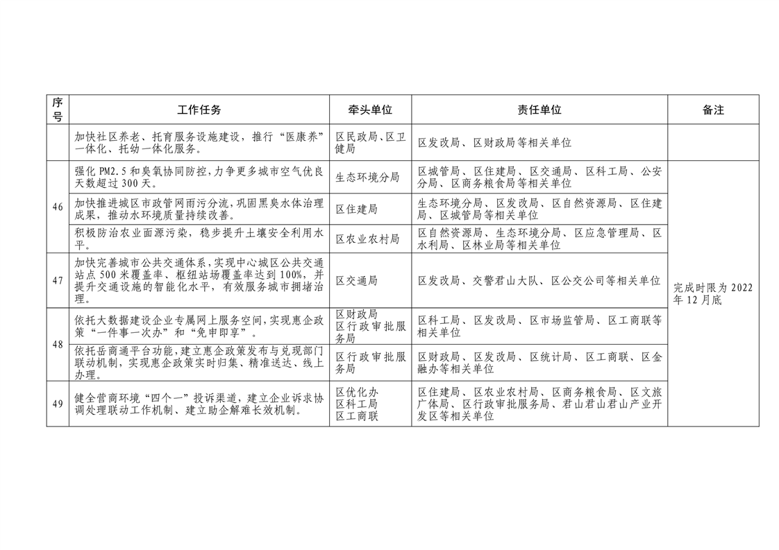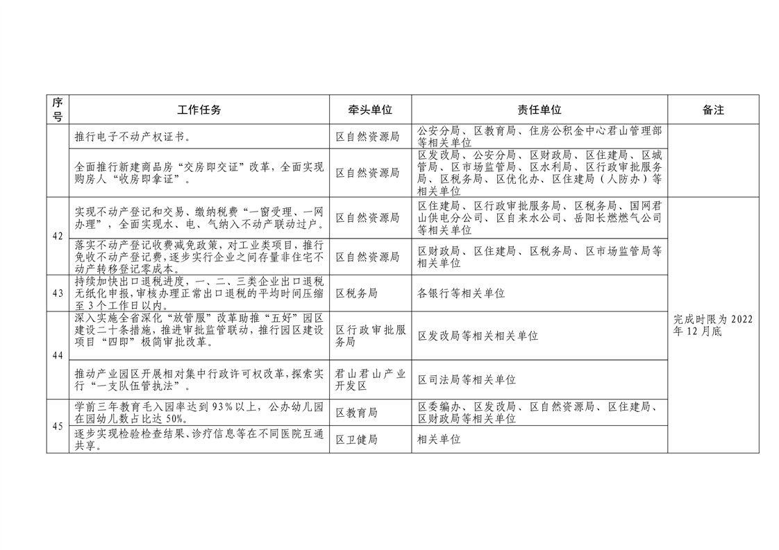 關(guān)于印發(fā)《君山區(qū)創(chuàng)建一流營商環(huán)境2022年重點工作任務(wù)分解表》的通知(征求意見稿)