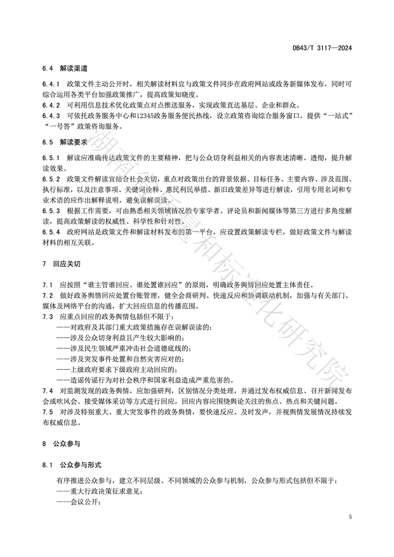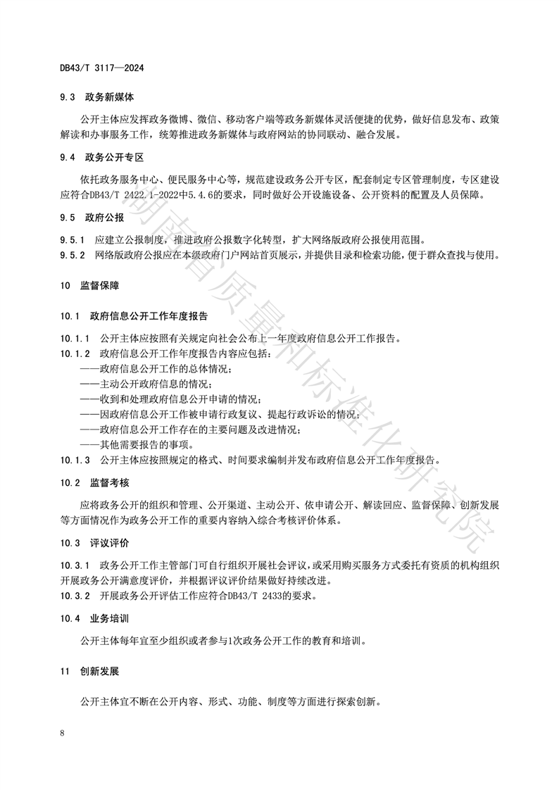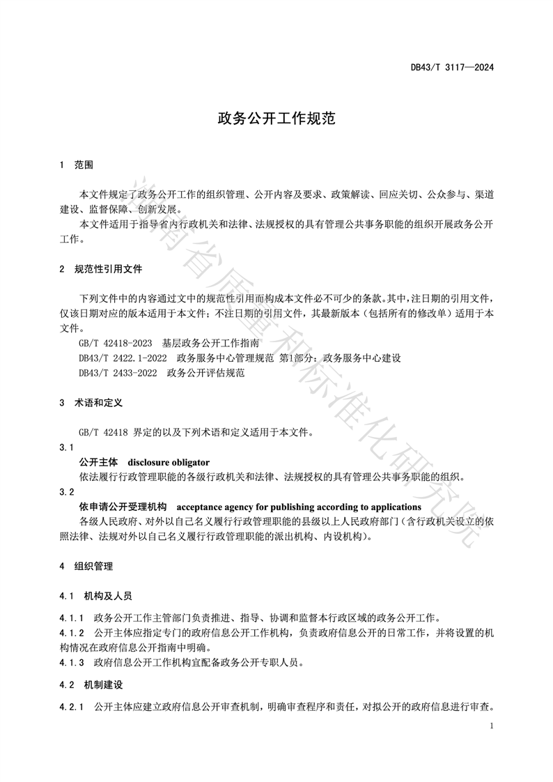 湖南省地方標(biāo)準(zhǔn)《政務(wù)公開工作規(guī)范》(DB43_T 3117-2024)