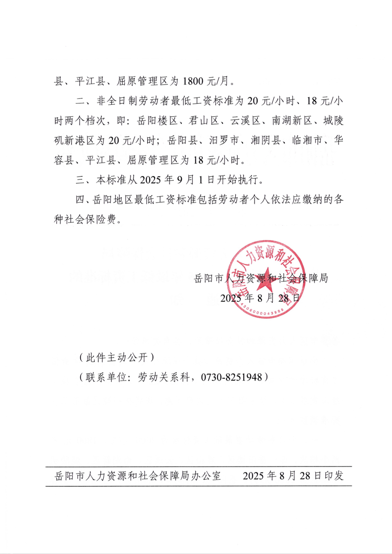 岳陽市人力資源和社會保障局關(guān)于調(diào)整岳陽市2025年最低工資標準的通知