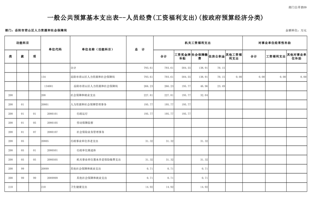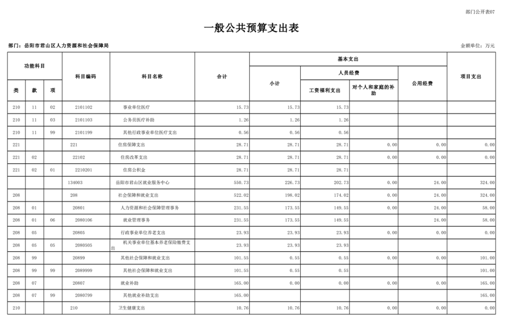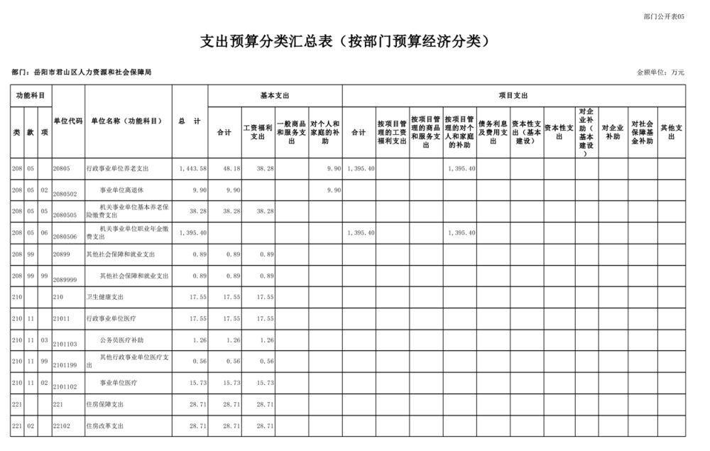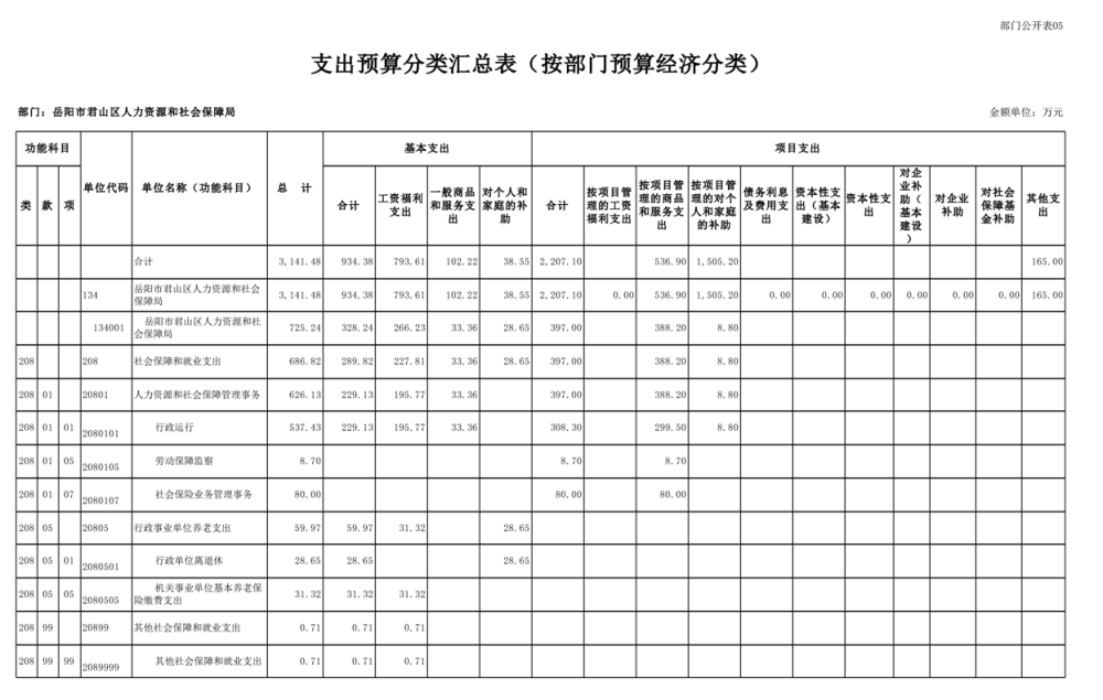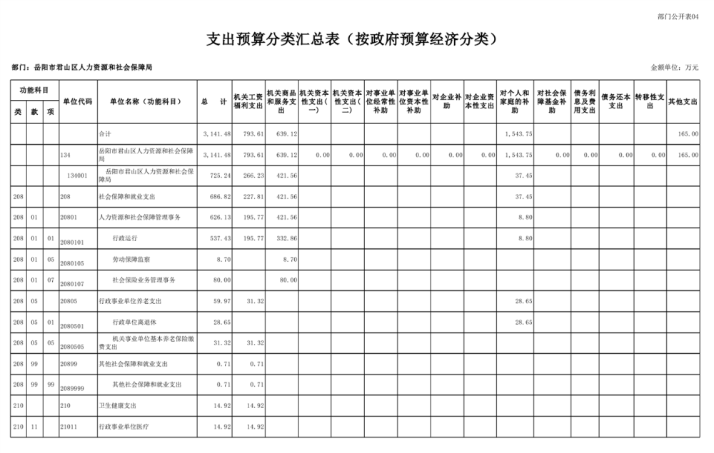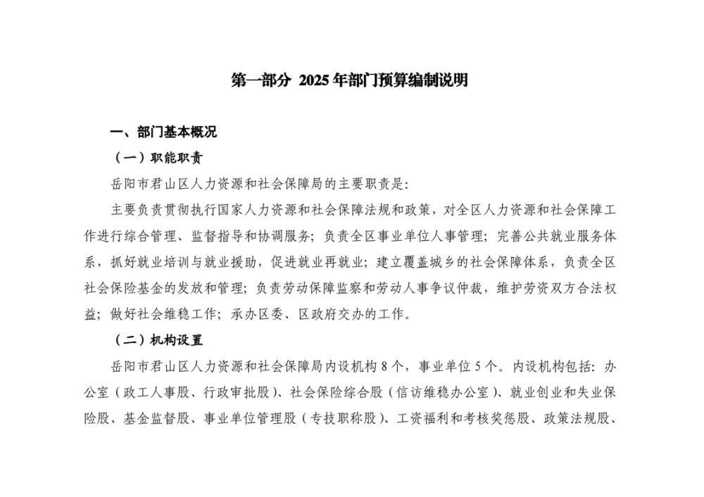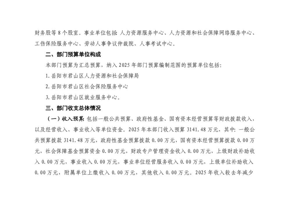 2025年岳陽市君山區(qū)人力資源和社會保障局(部門)預(yù)算公開