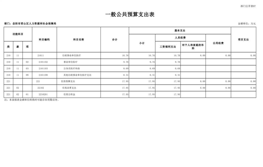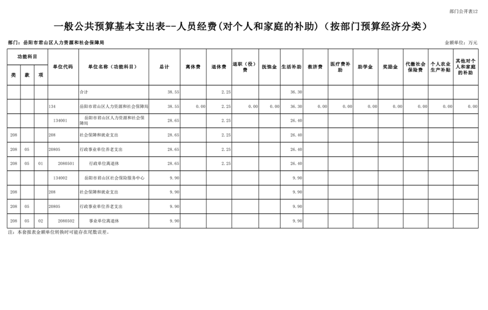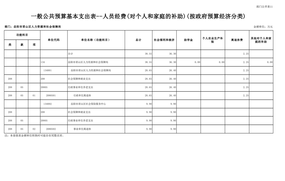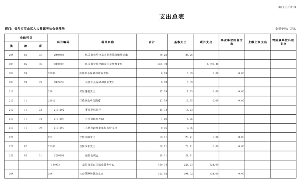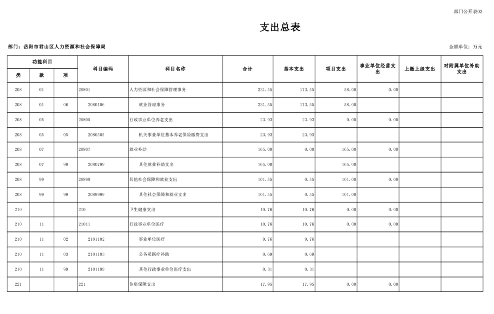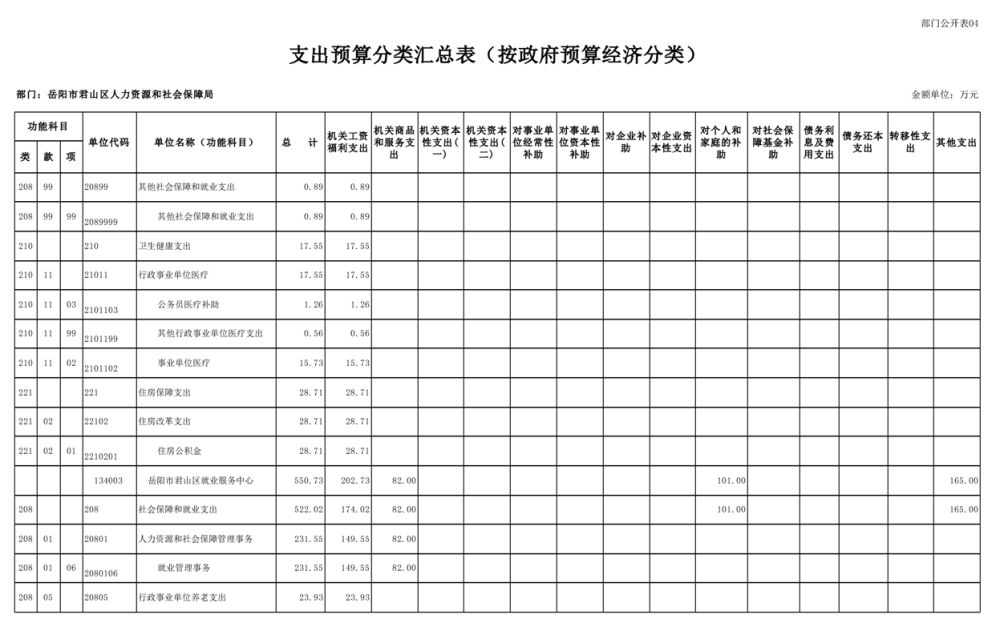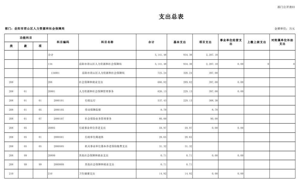 2025年岳陽市君山區(qū)人力資源和社會保障局(部門)預(yù)算公開