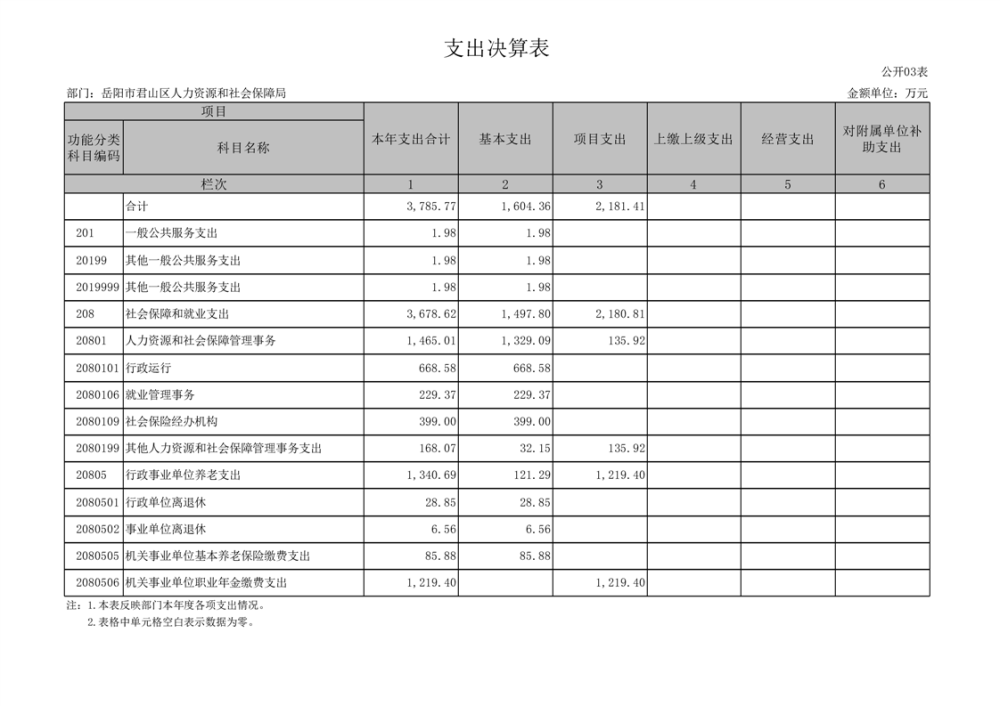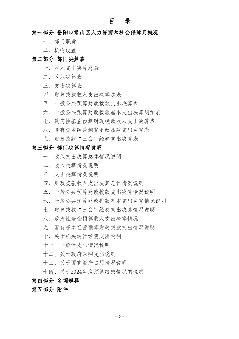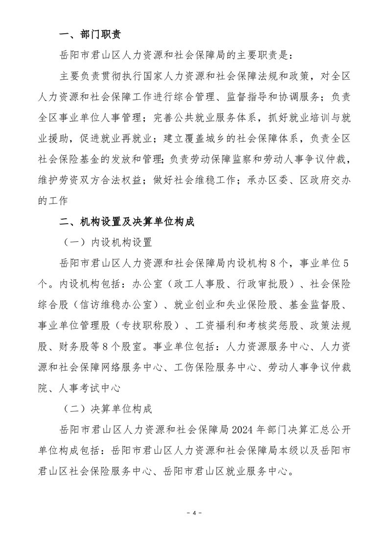 2024年度岳陽市君山區(qū)人力資源和社會保障局(匯總)部門決算公開