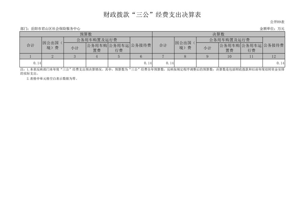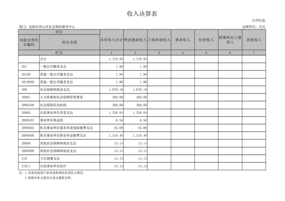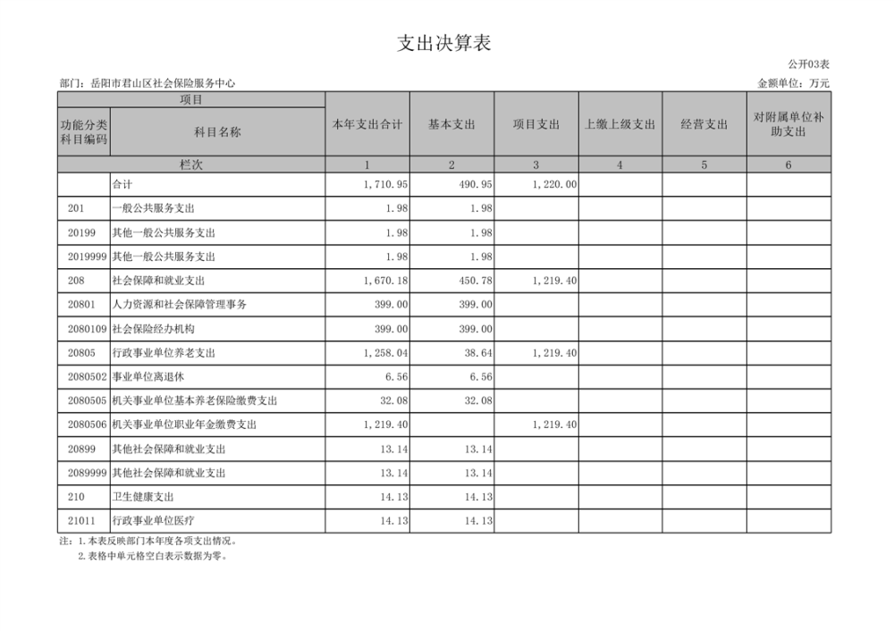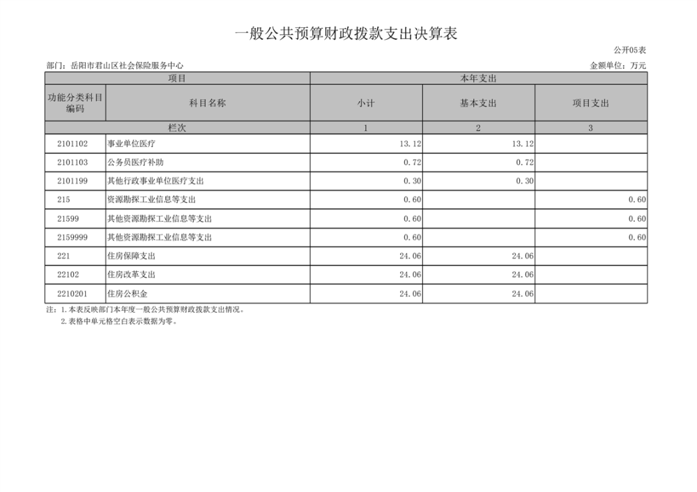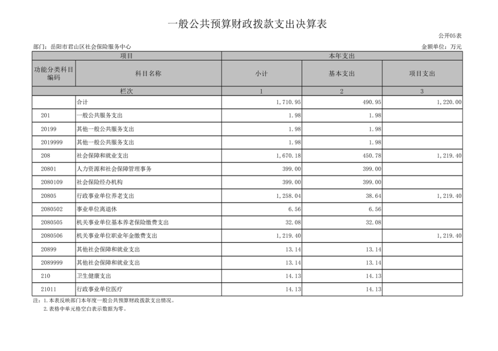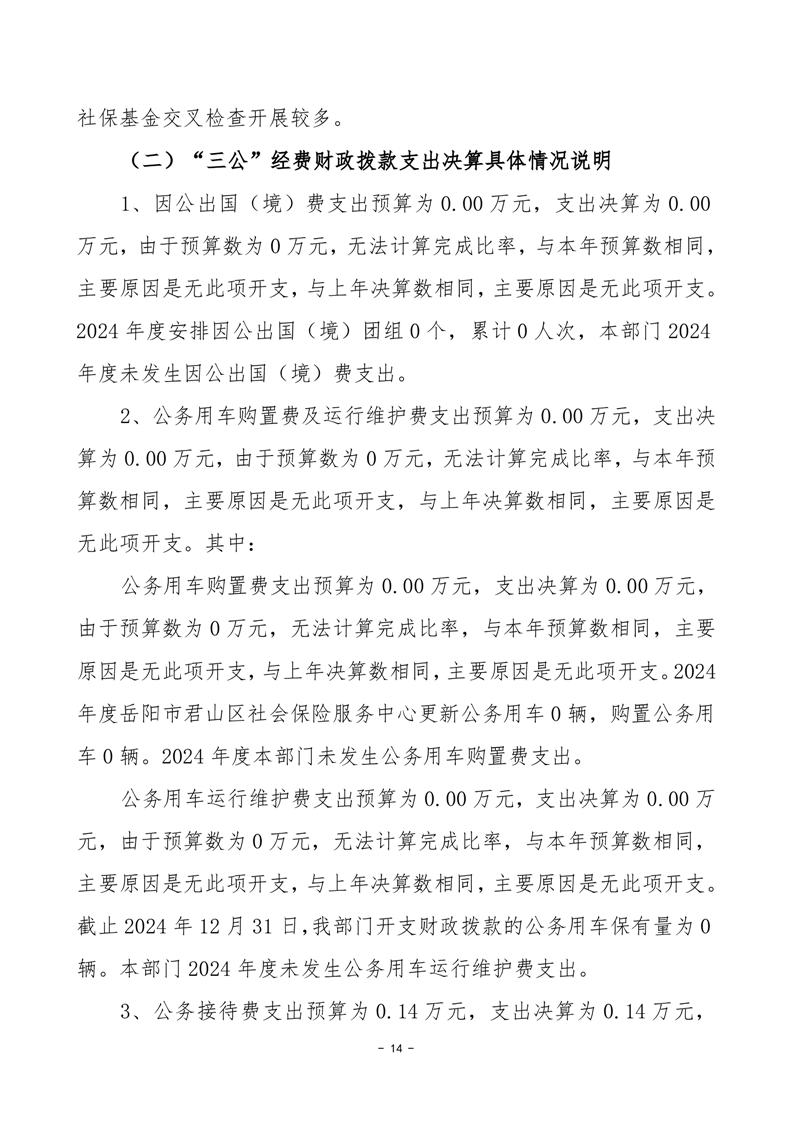 2024年度岳陽市君山區(qū)社會(huì)保險(xiǎn)服務(wù)中心部門決算公開