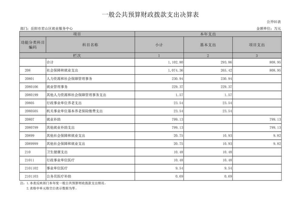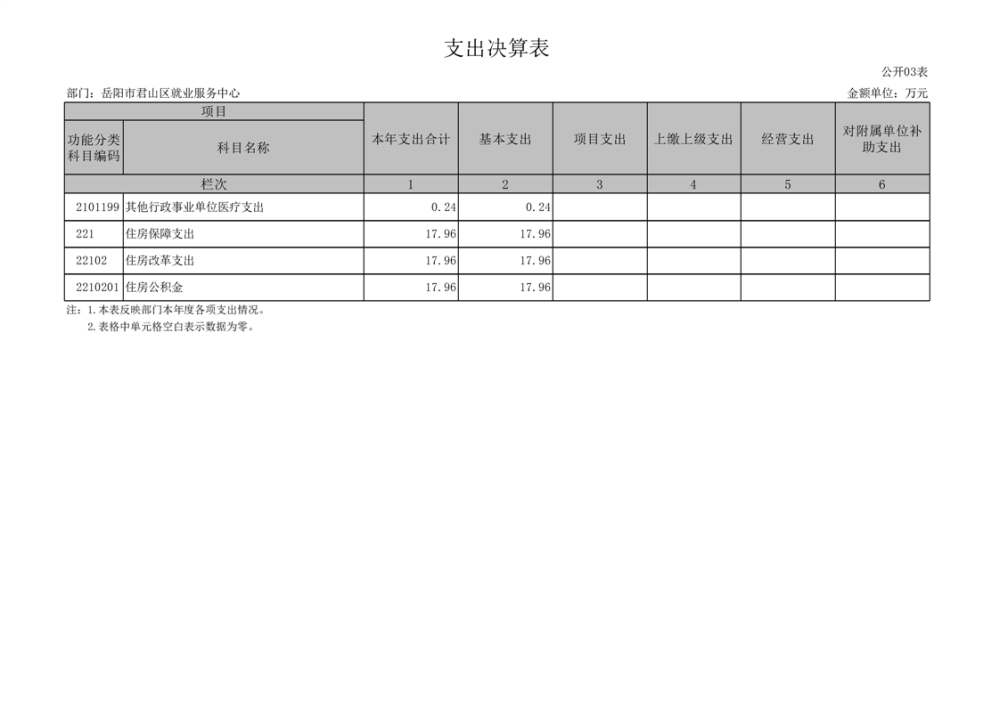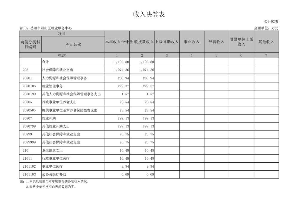 2024年度岳陽市君山區(qū)就業(yè)服務(wù)中心部門決算公開