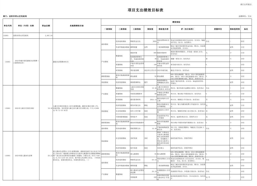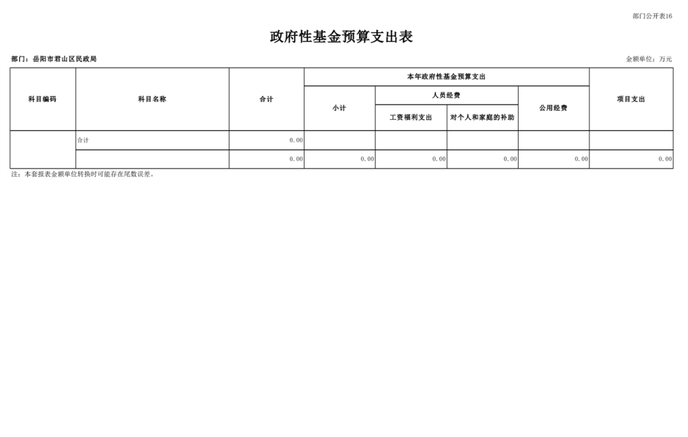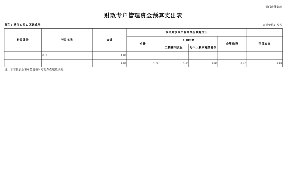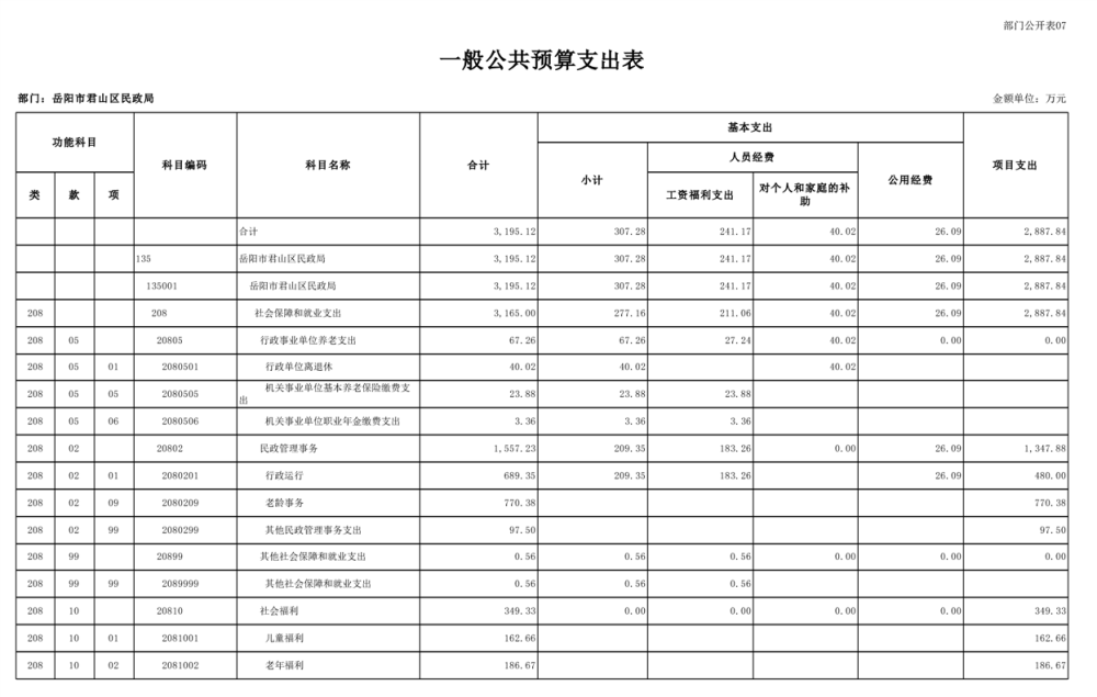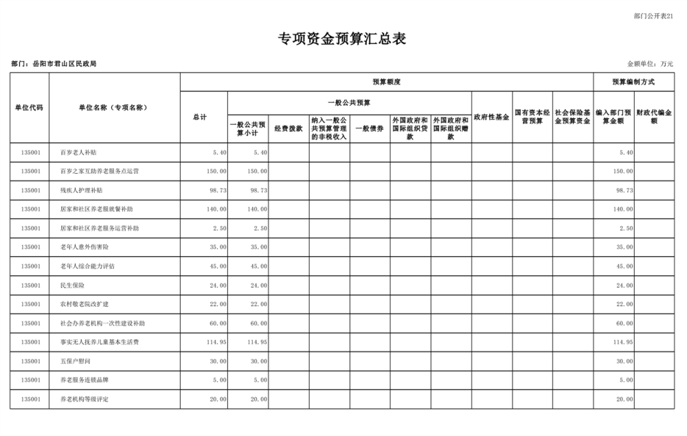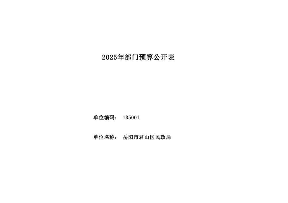 2025年岳陽市君山區(qū)民政局部門預算公開