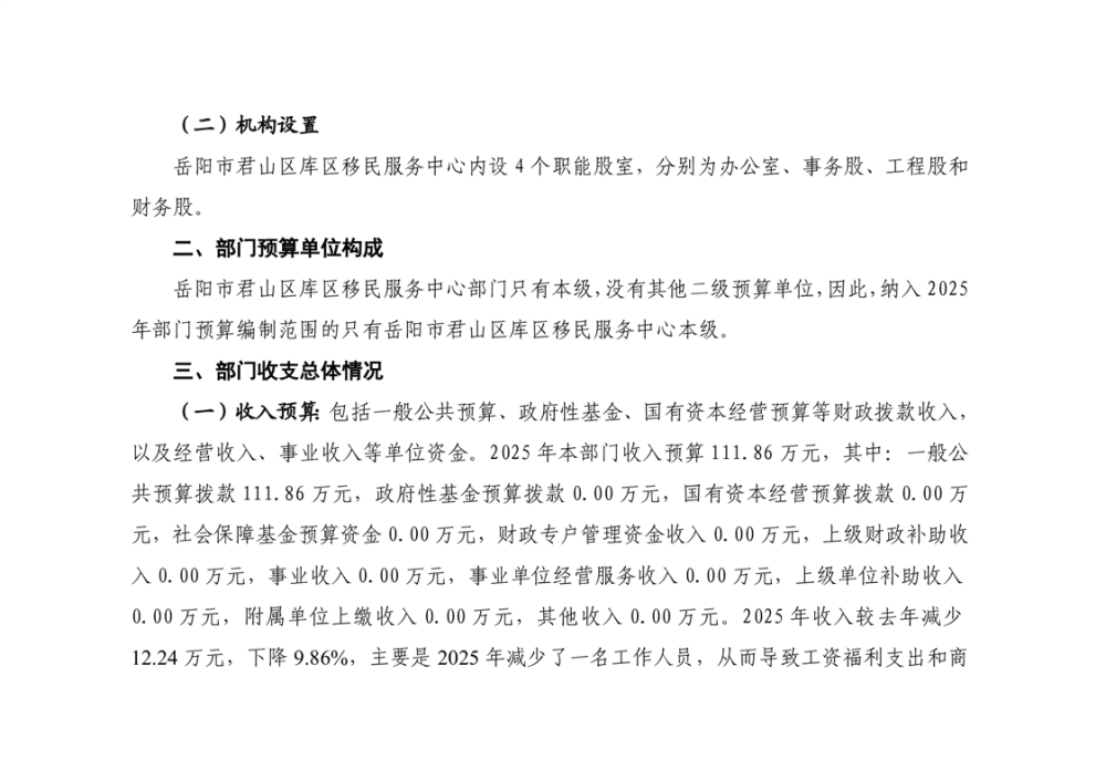 2025年岳陽(yáng)市君山區(qū)庫(kù)區(qū)移民服務(wù)中心部門(mén)預(yù)算公開(kāi)