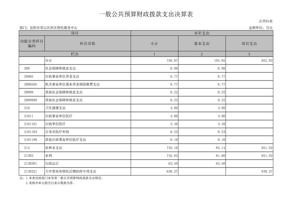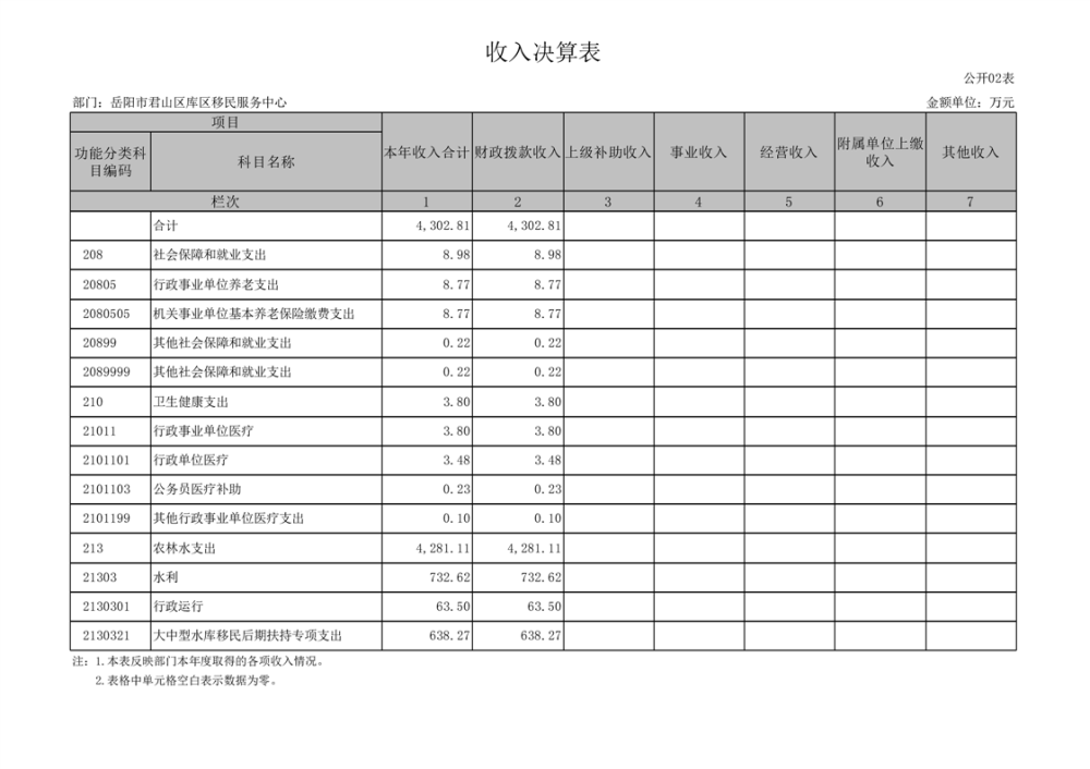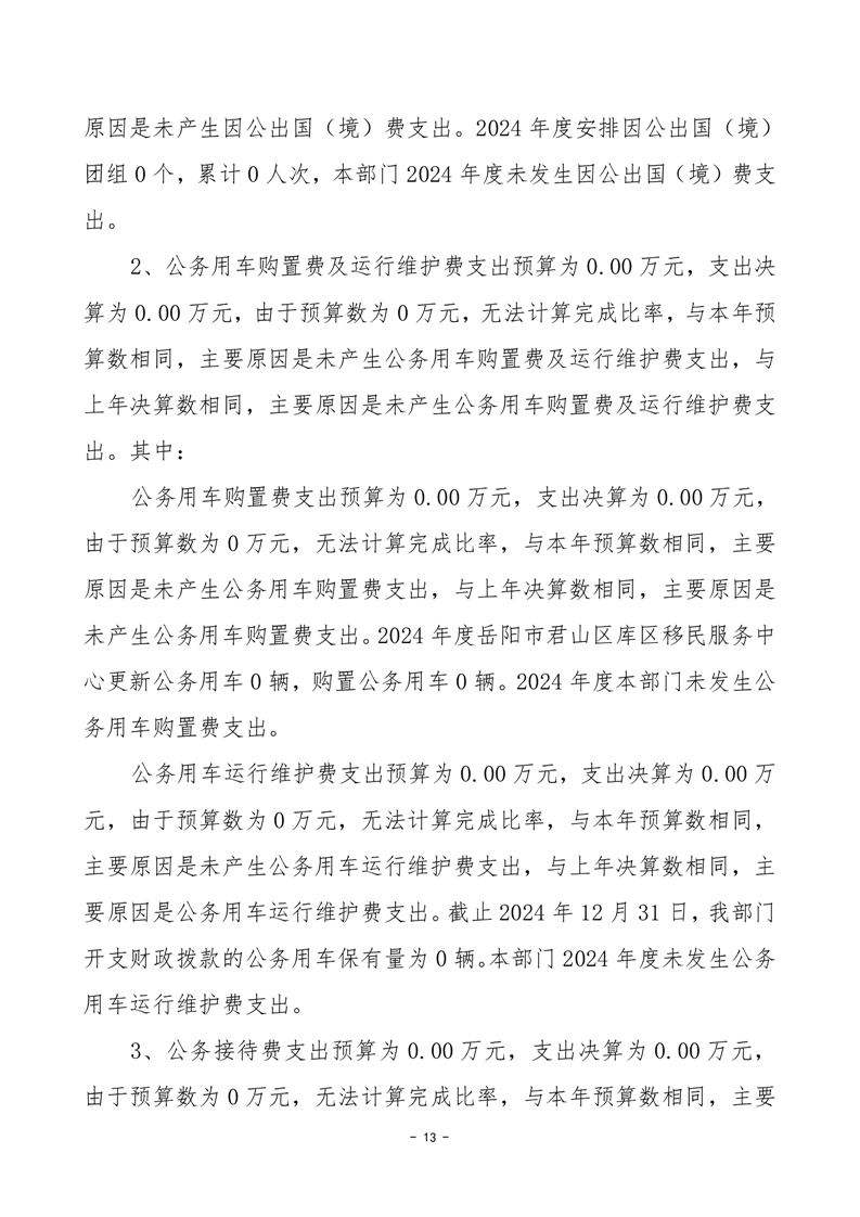 2024年度岳陽市君山區(qū)庫區(qū)移民服務(wù)中心部門決算公開