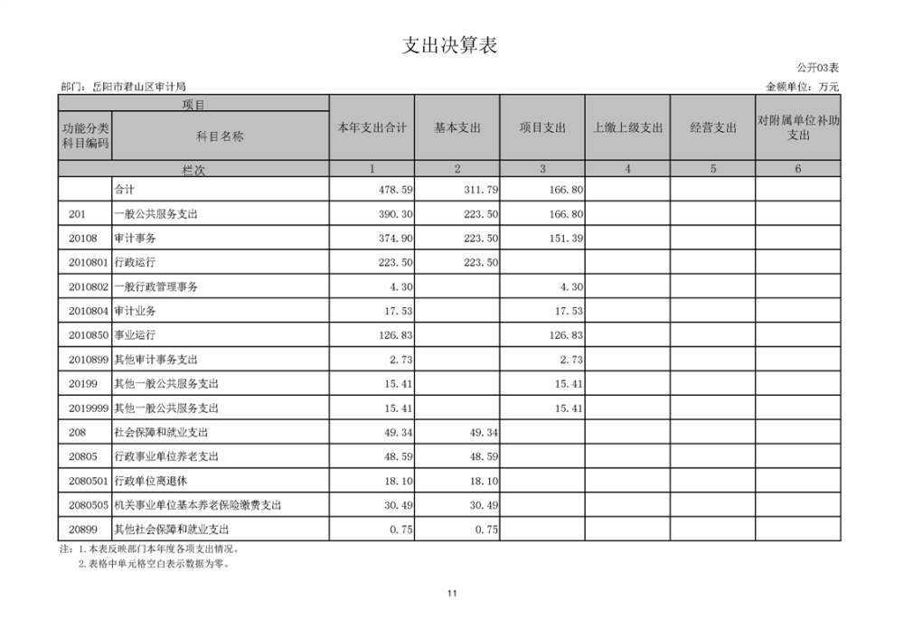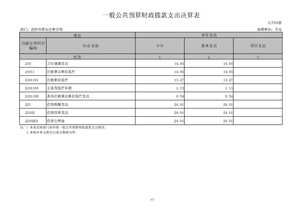 2024年度岳陽市君山區(qū)審計(jì)局部門決算公開