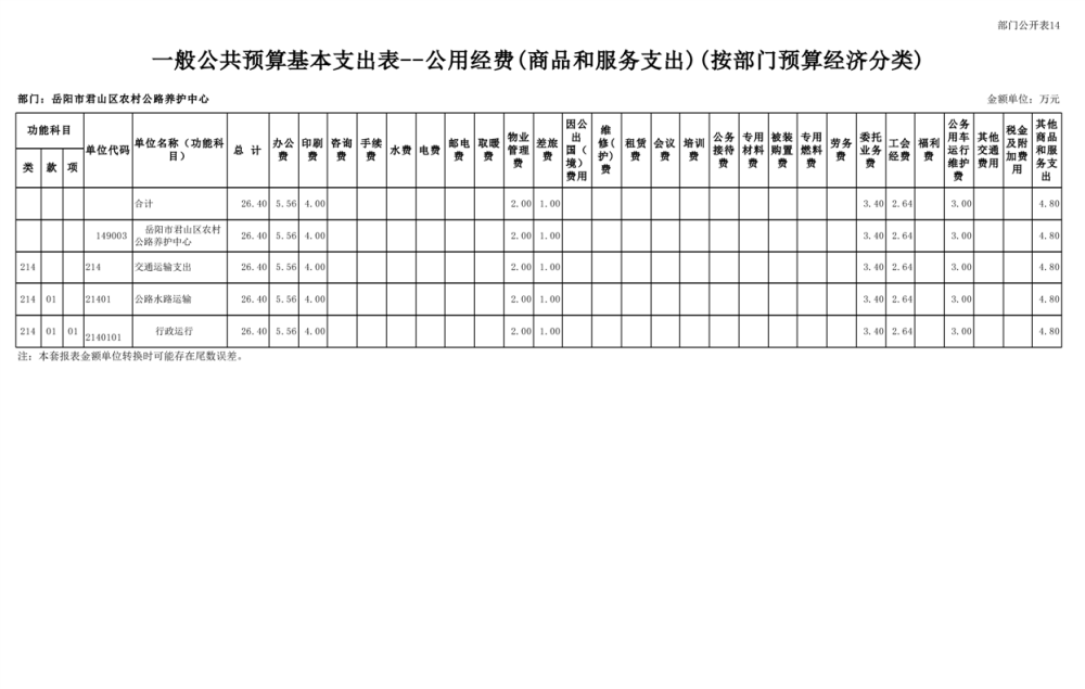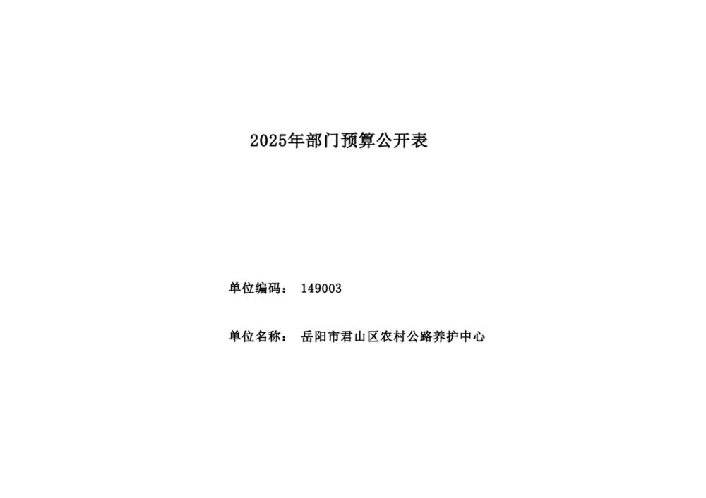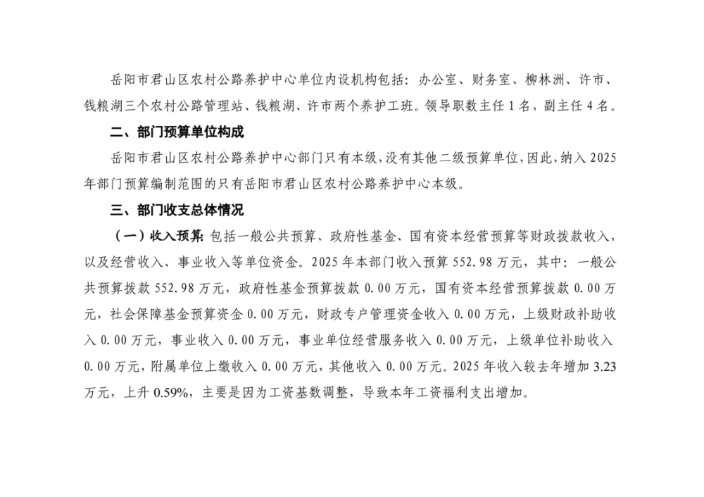 2025年岳陽(yáng)市君山區(qū)農(nóng)村公路養(yǎng)護(hù)中心部門預(yù)算公開