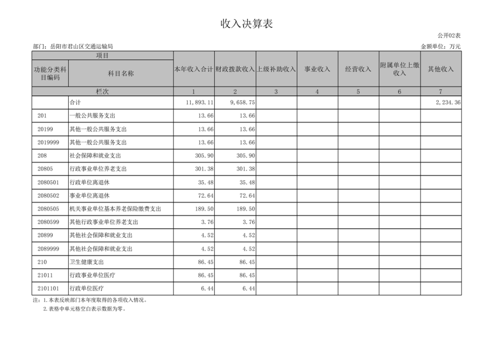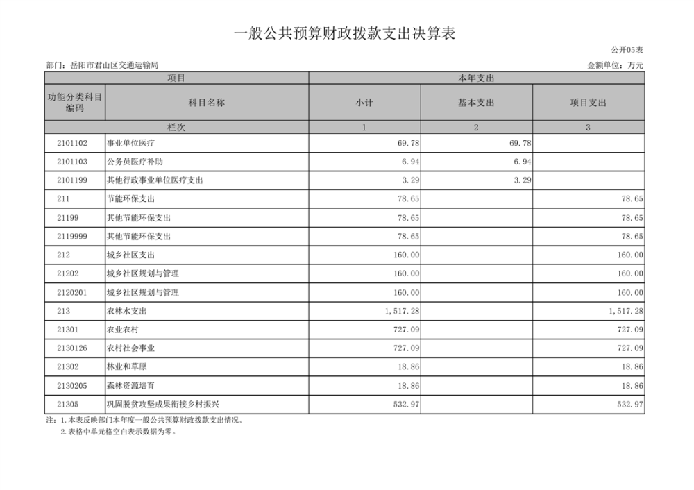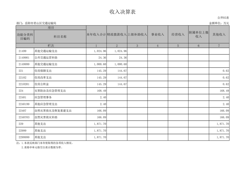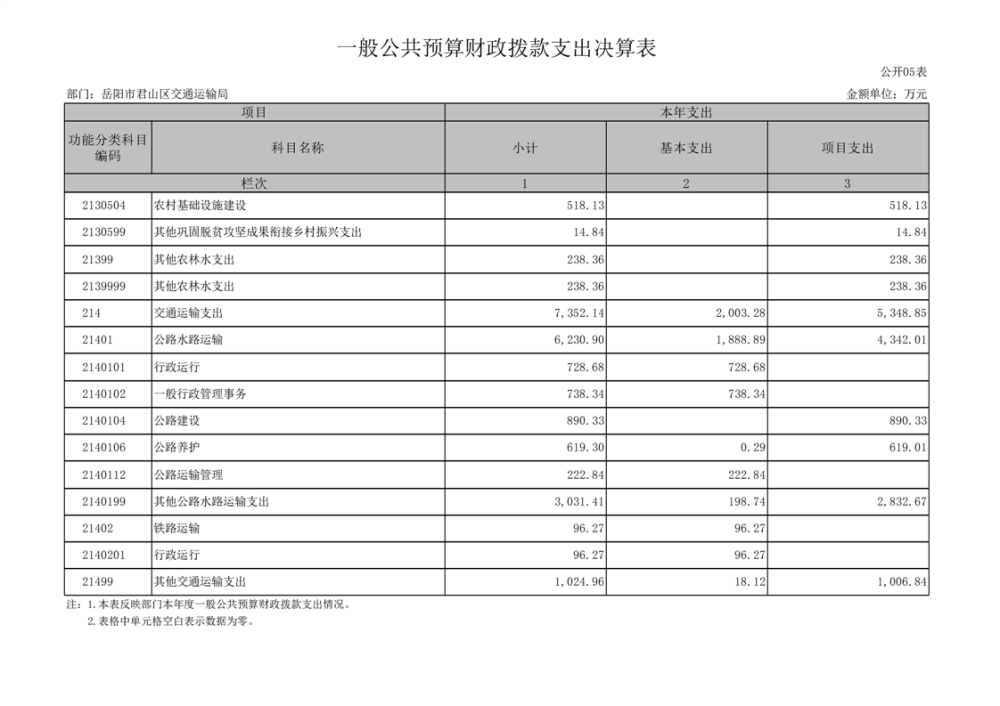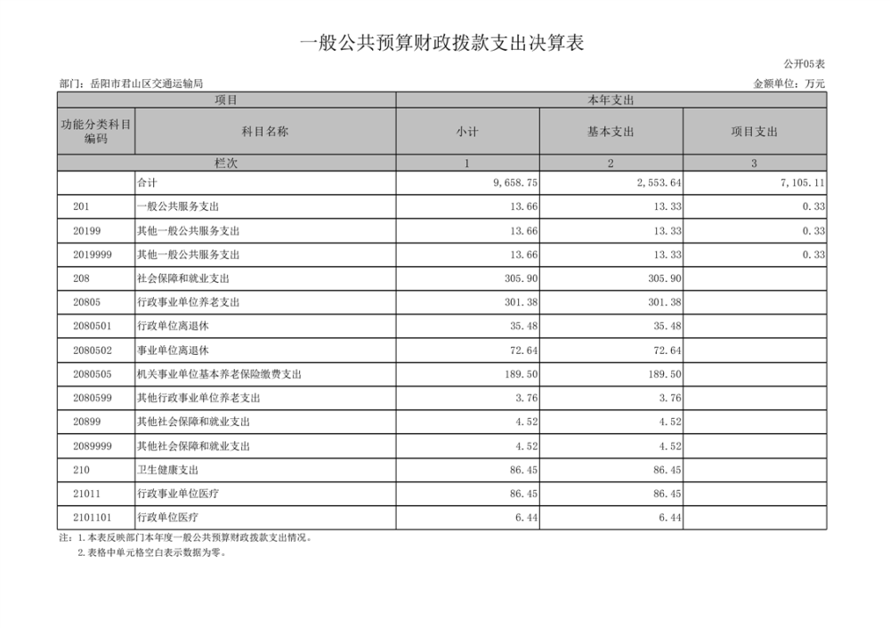 2024年度岳陽(yáng)市君山區(qū)交通運(yùn)輸局(匯總)部門(mén)決算公開(kāi)