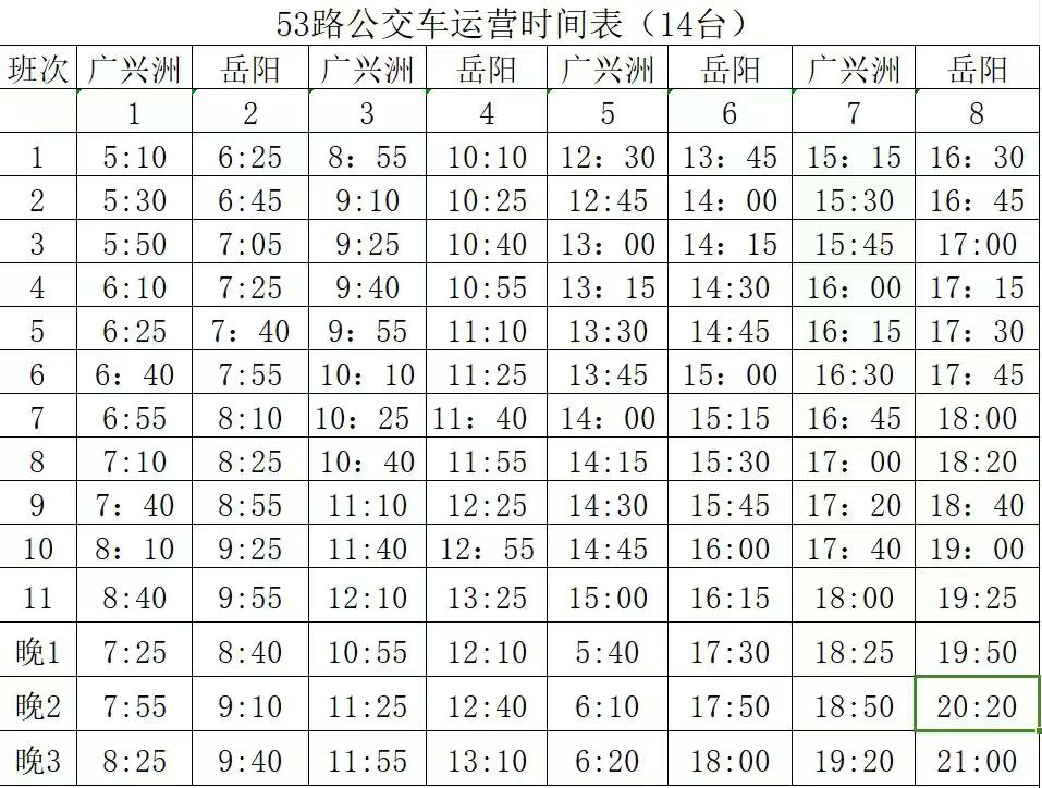 2025年君山區(qū)公交線路的車次分段價位表及運營時間表