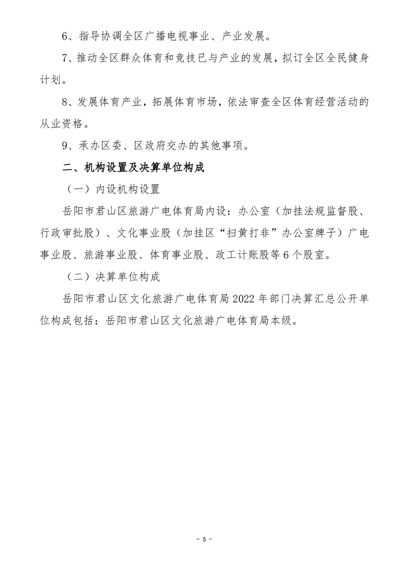 2022年度岳陽(yáng)市君山區(qū)文化旅游廣電體育局(本級(jí))部門決算公開說(shuō)明