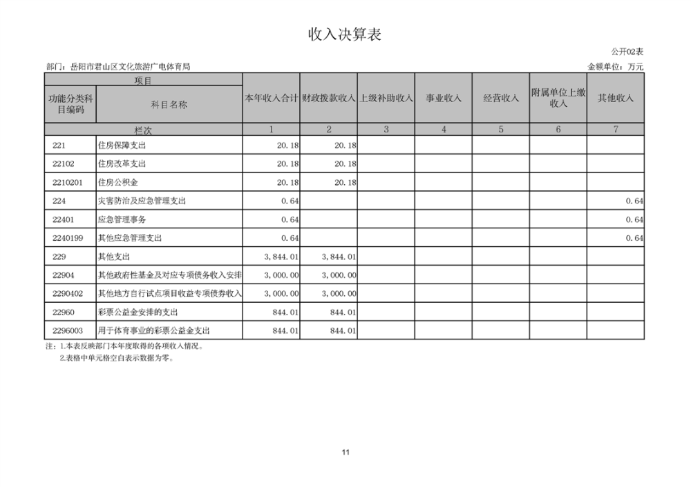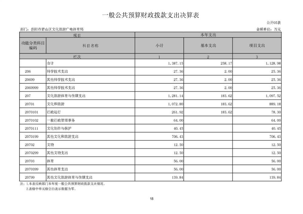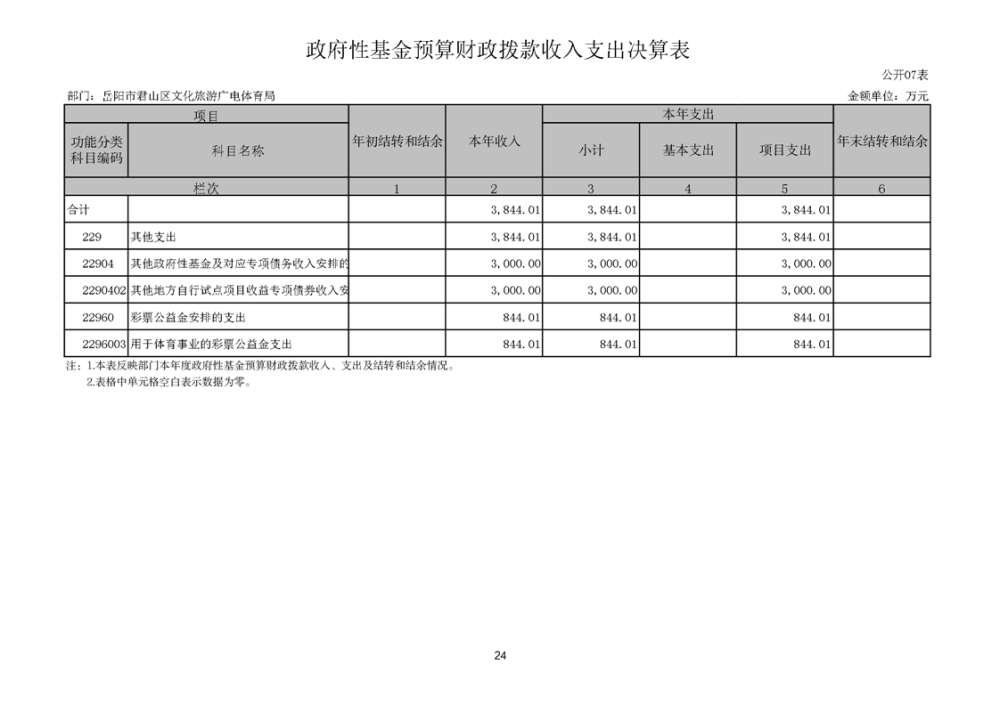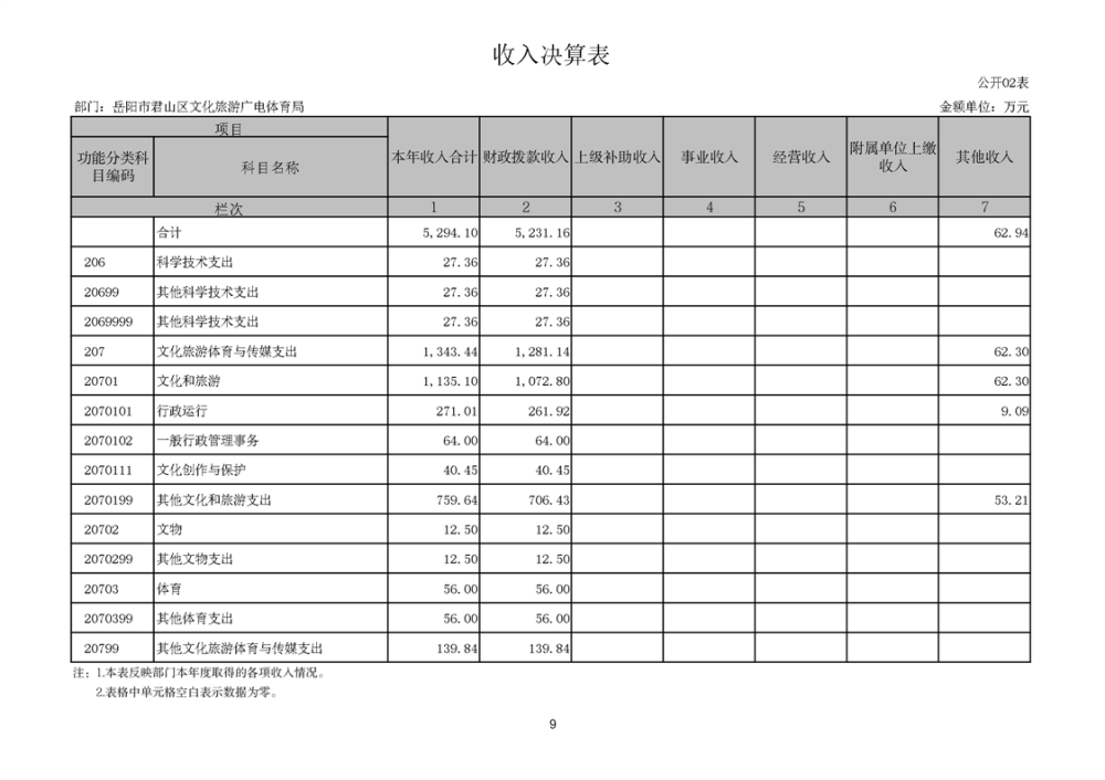 2024年度岳陽市君山區(qū)文化旅游廣電體育局(本級(jí))決算情況公開