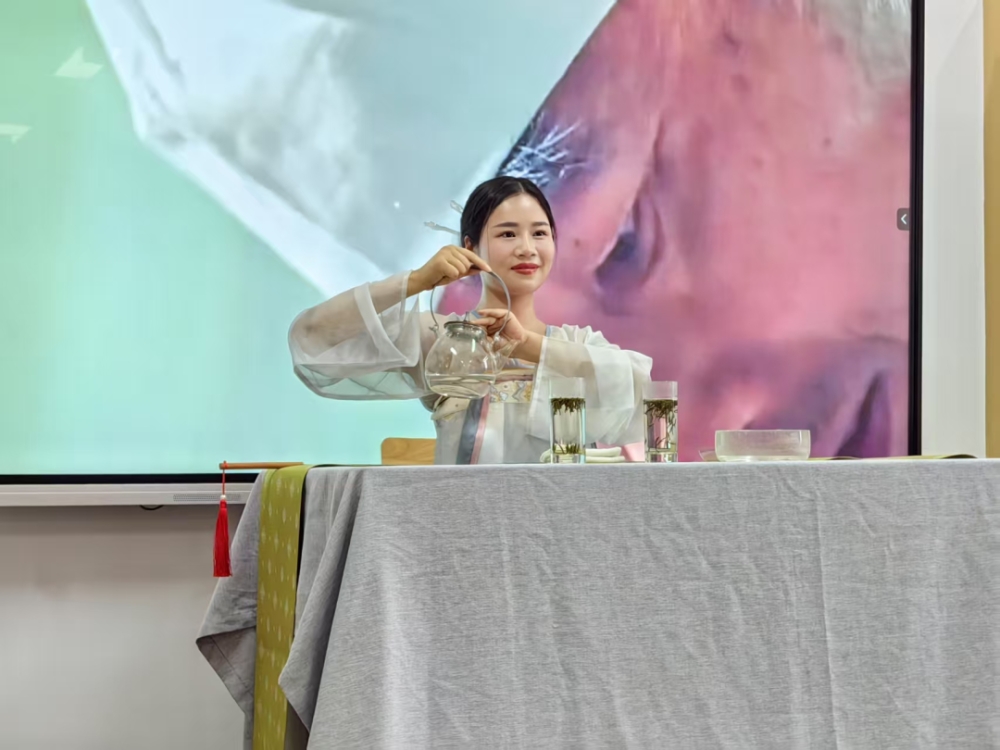 活動現(xiàn)場,原創(chuàng)節(jié)目君山銀針茶藝表演尤為亮眼。茶藝師身著傳統(tǒng)服飾,以行云流水般的動作展示君山銀針“三起三落”的沖泡技藝,清香茶韻讓觀眾沉浸式感受非遺魅力。非遺展板區(qū)域同樣人氣十足,圖文并茂的展板詳細(xì)介紹了我區(qū)非遺項目的歷史淵源與傳承現(xiàn)狀,文化志愿者們穿梭其間,用生動易懂的語言為參觀者講解非遺知識,解答疑問,搭建起非遺與大眾之間的溝通橋梁。