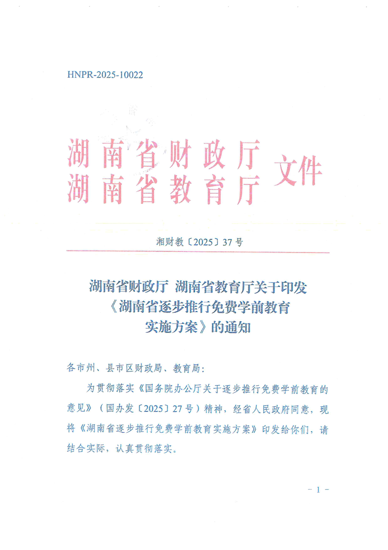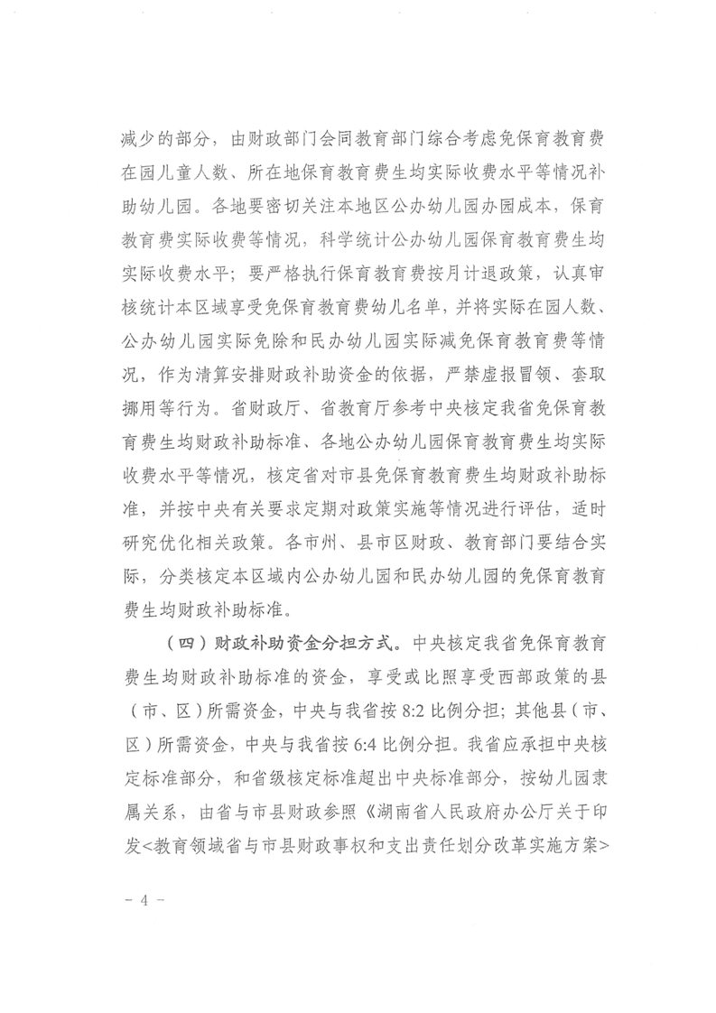 湖南省財政廳 湖南省教育廳關于印發(fā)《湖南省逐步推行免費學前教育實施方案》的通知