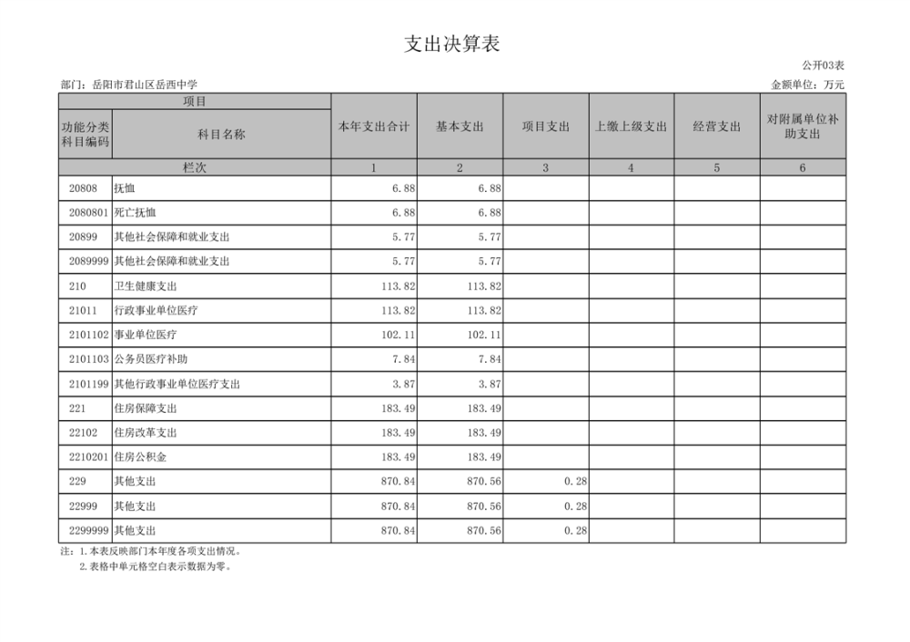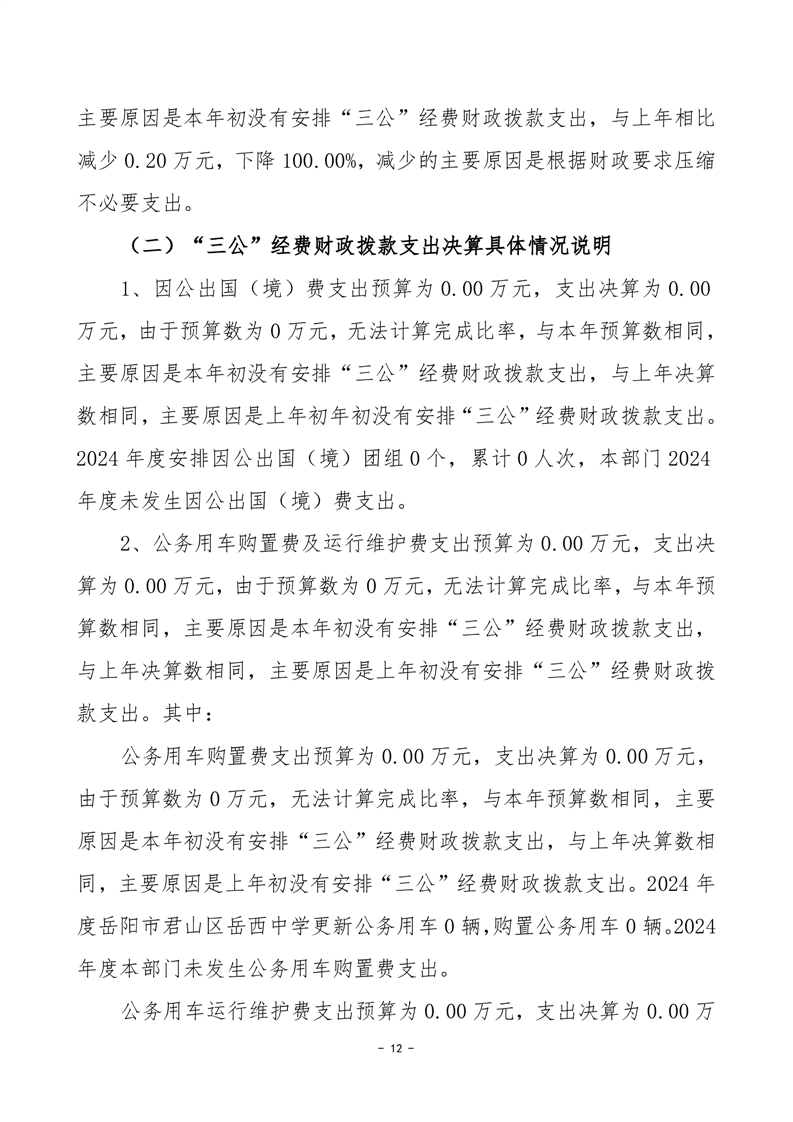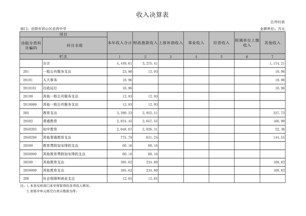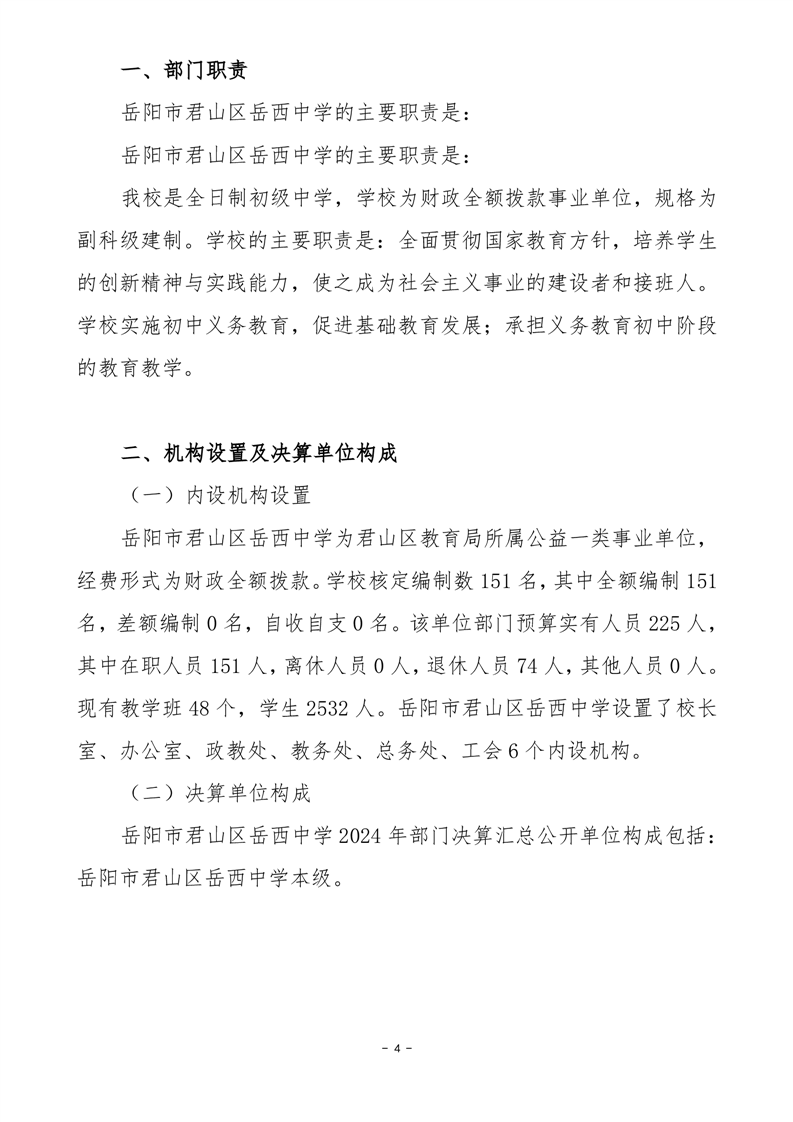 2024年度岳陽市君山區(qū)岳西中學(xué)部門決算公開