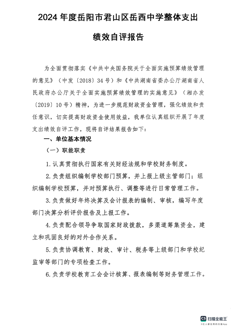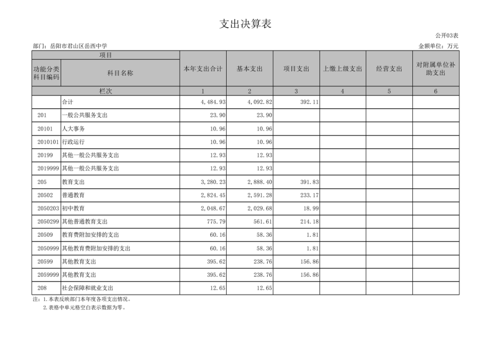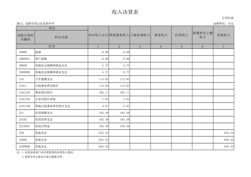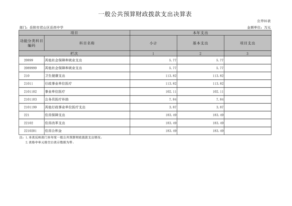 2024年度岳陽市君山區(qū)岳西中學(xué)部門決算公開