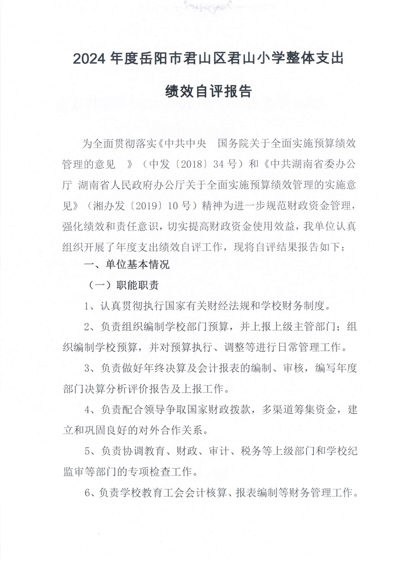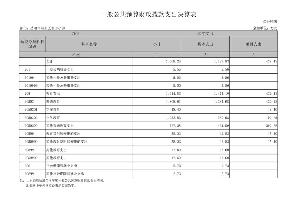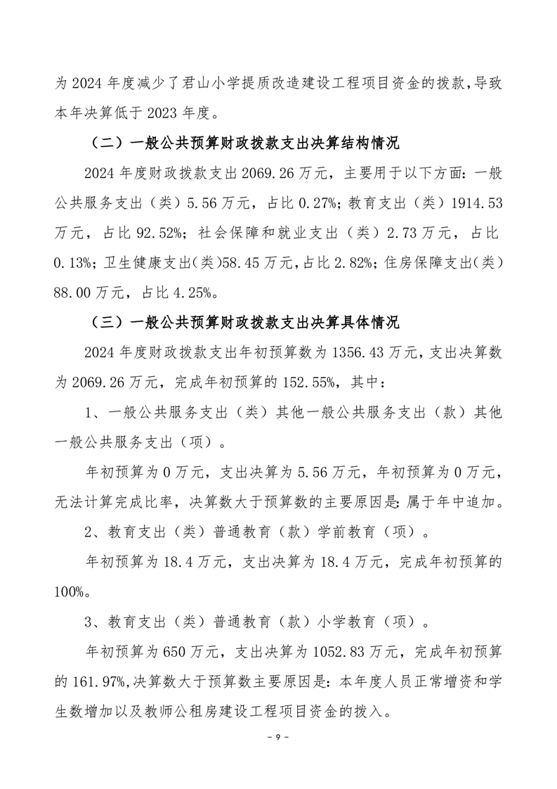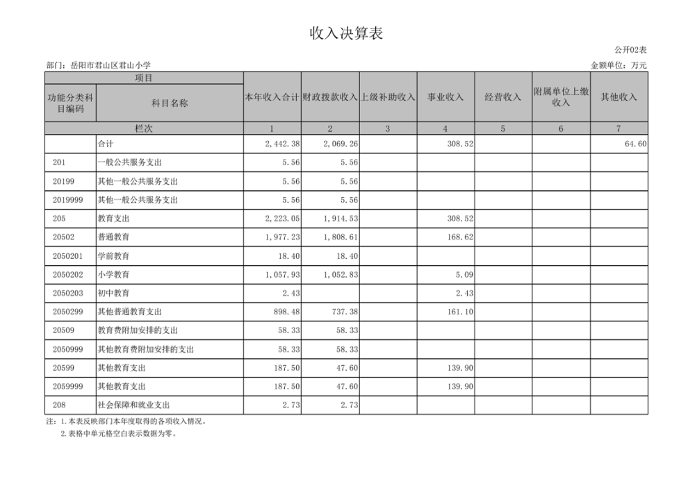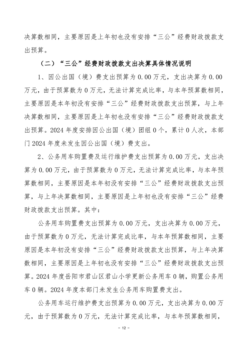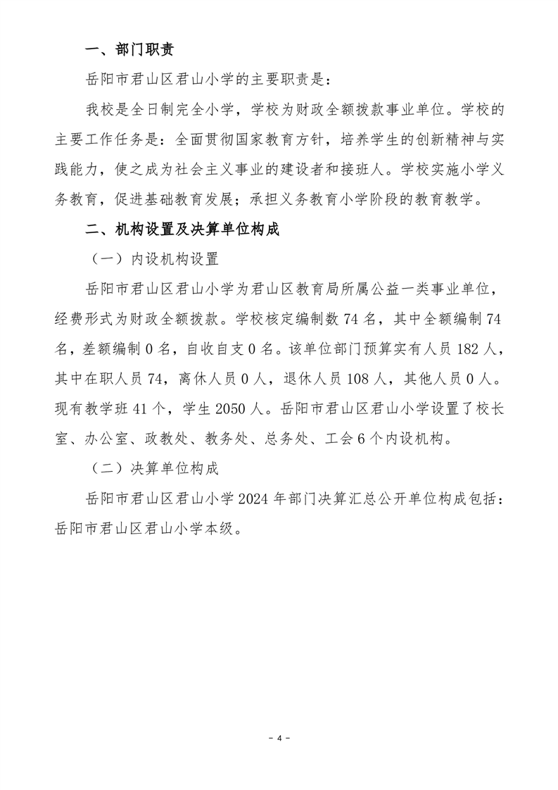 2024年度岳陽(yáng)市君山區(qū)君山小學(xué)部門決算公開