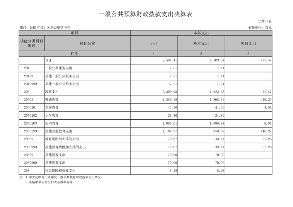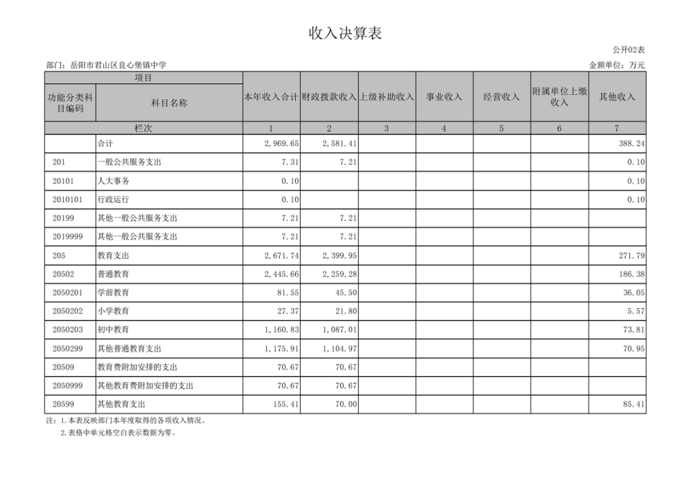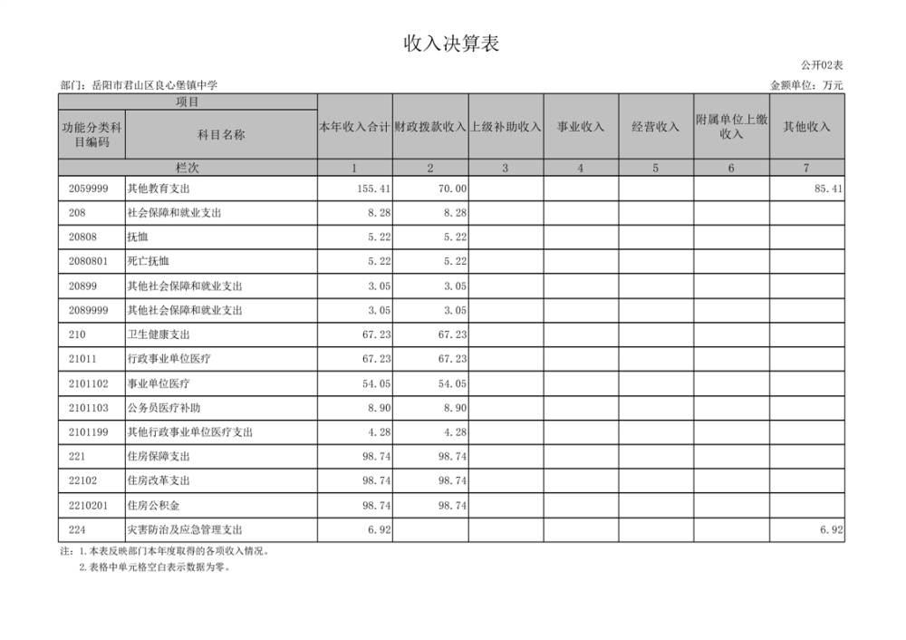 2024年度岳陽(yáng)市君山區(qū)良心堡鎮(zhèn)中學(xué)部門(mén)決算公開(kāi)