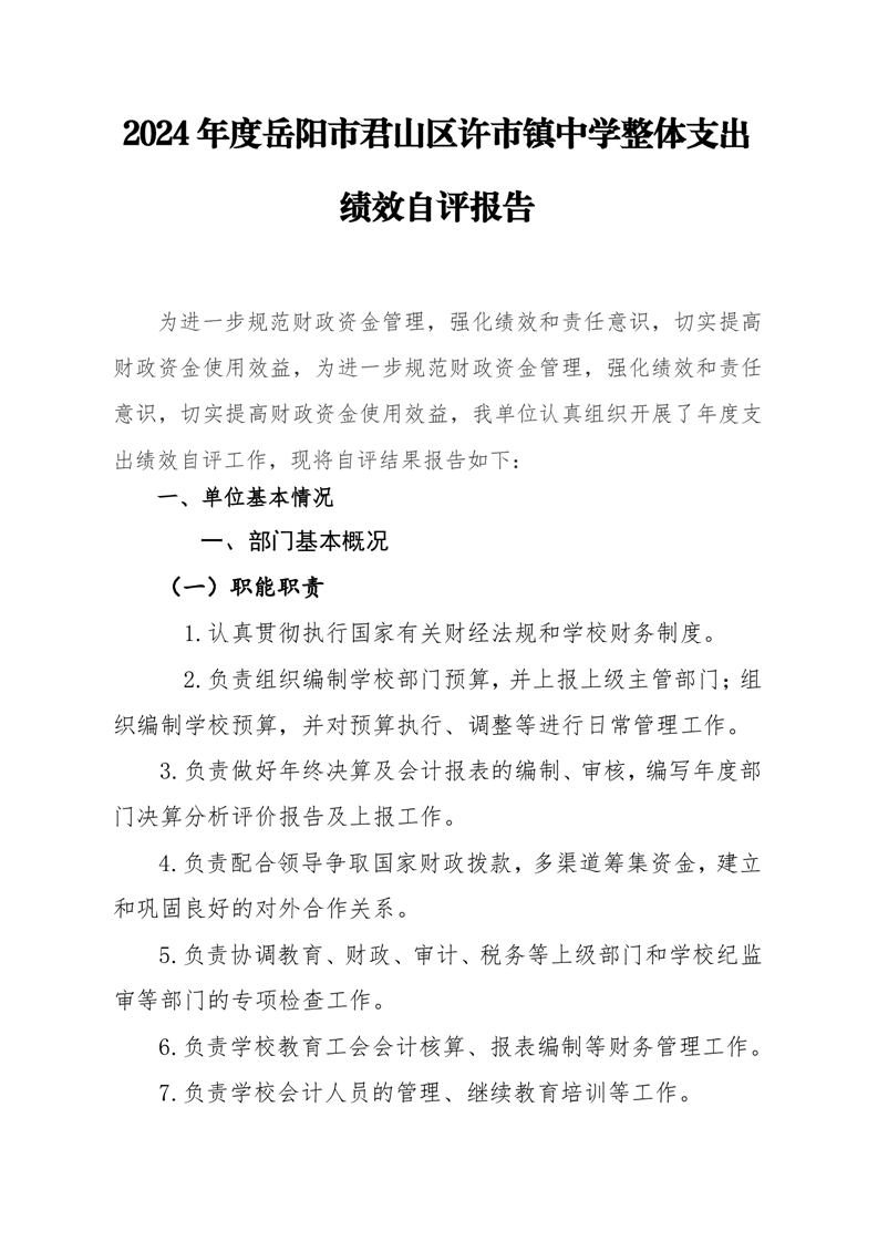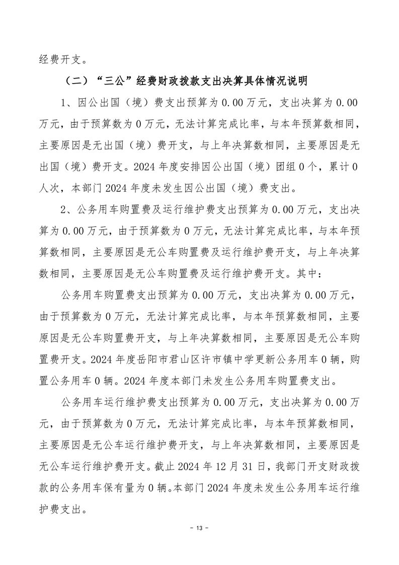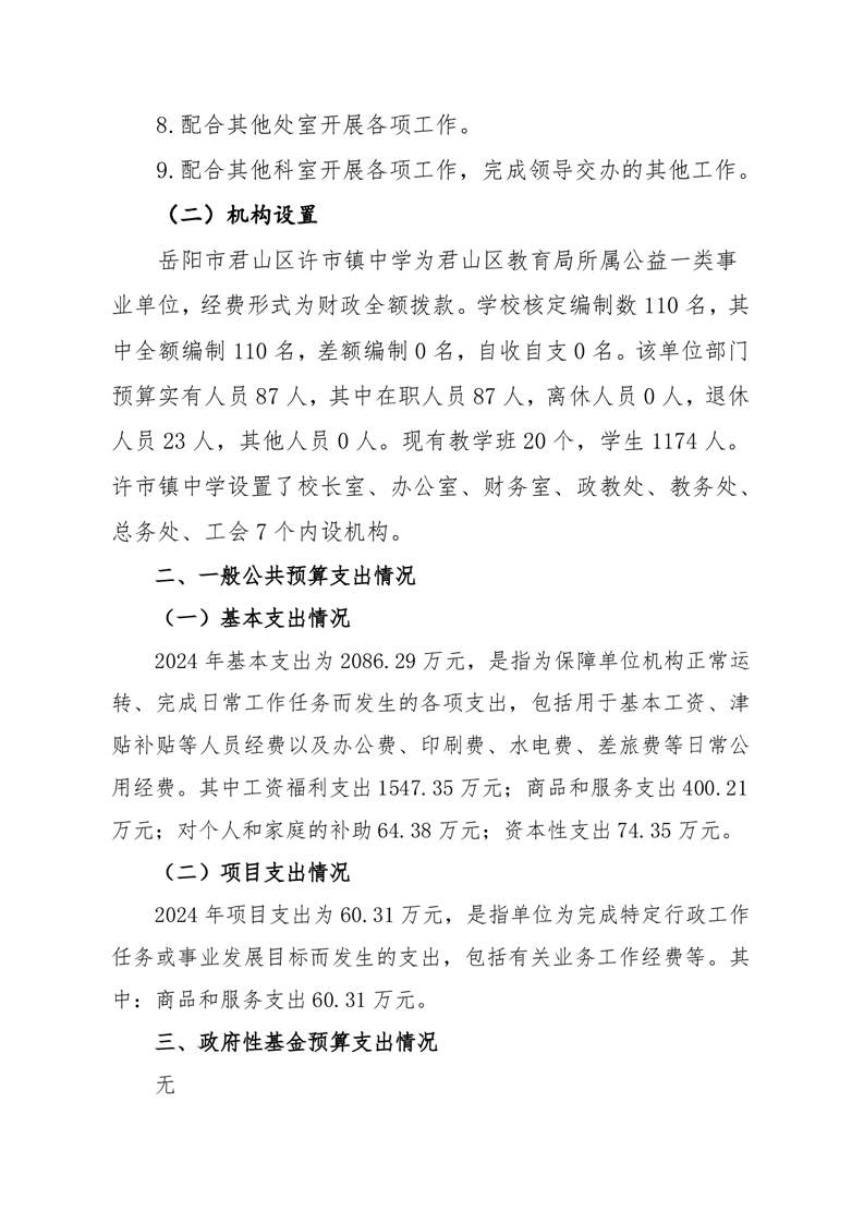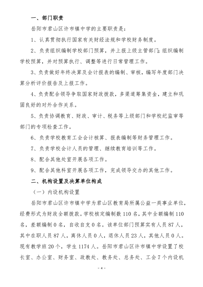 2024年度岳陽市君山區(qū)許市鎮(zhèn)中學(xué)部門決算公開