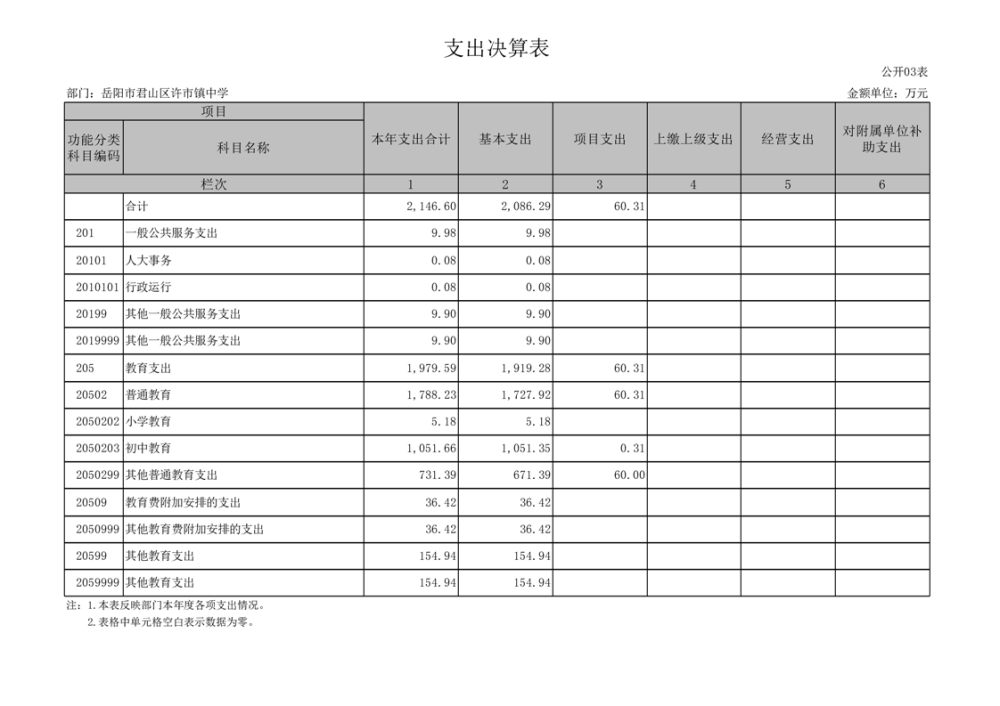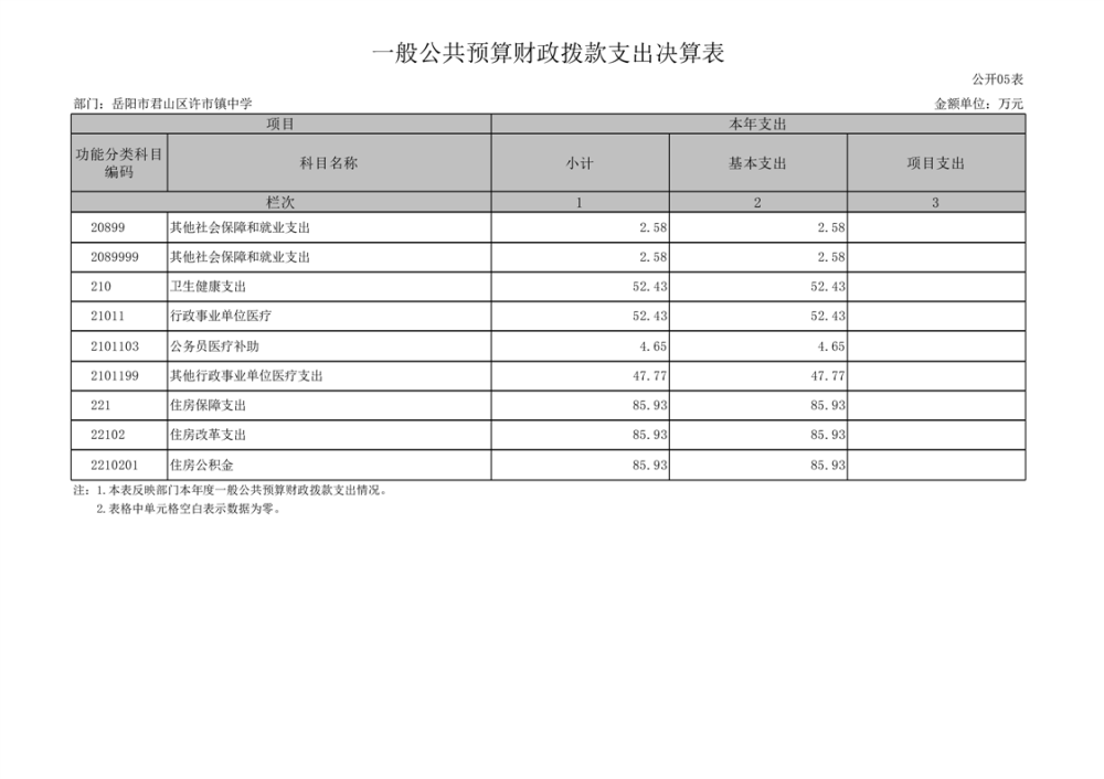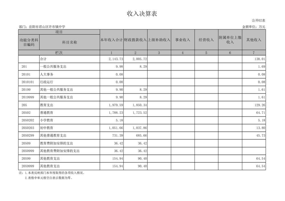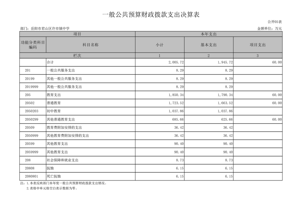 2024年度岳陽市君山區(qū)許市鎮(zhèn)中學(xué)部門決算公開