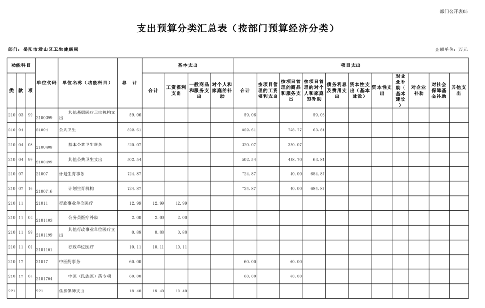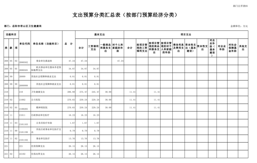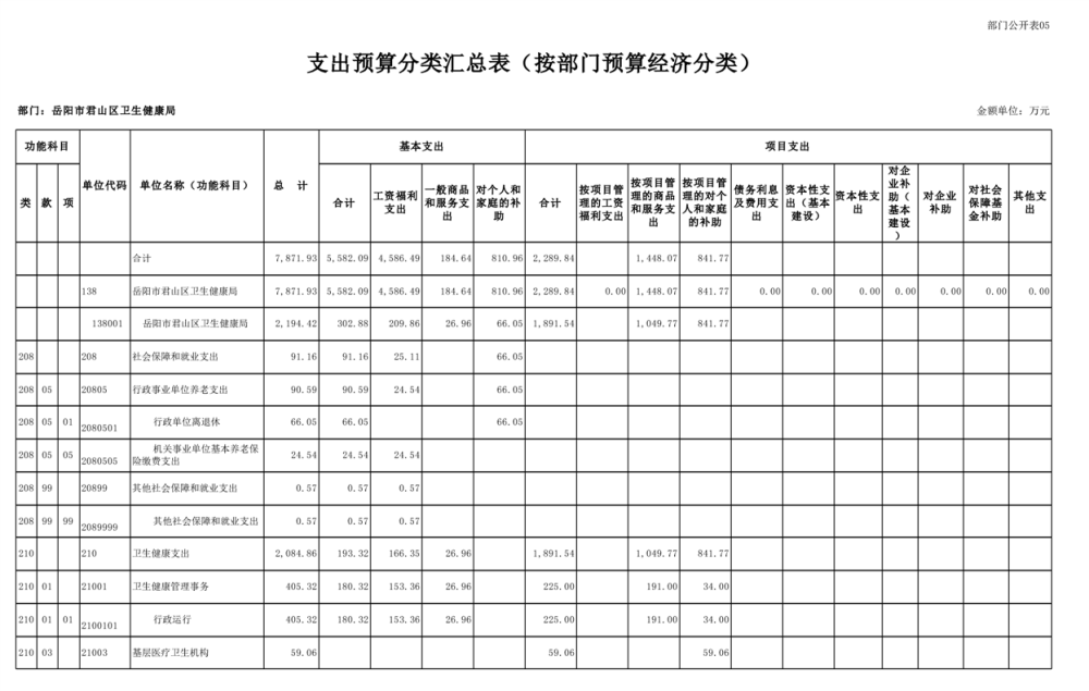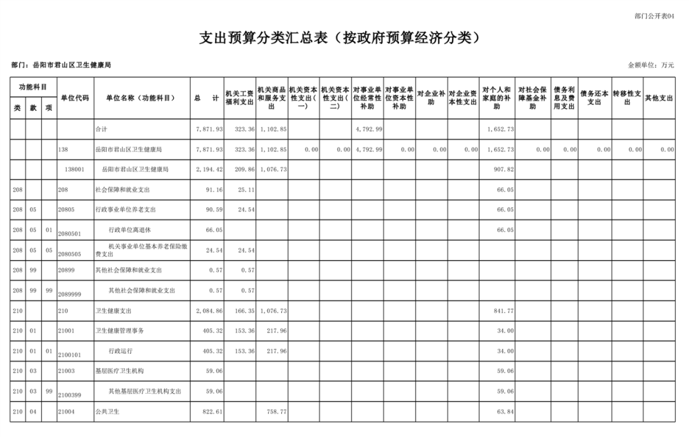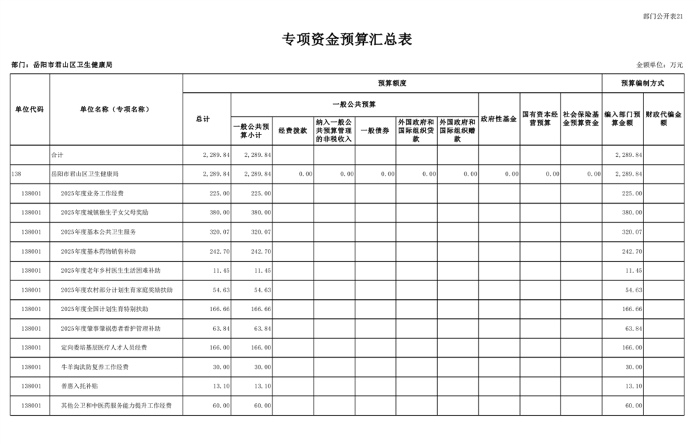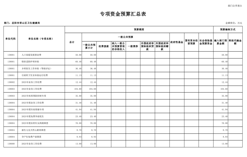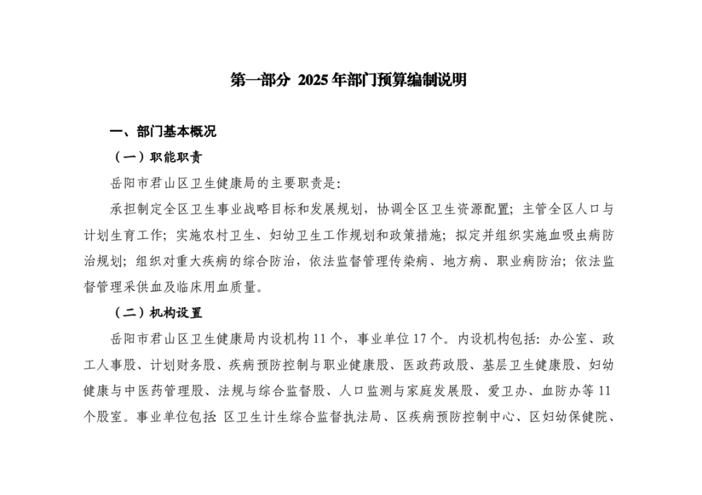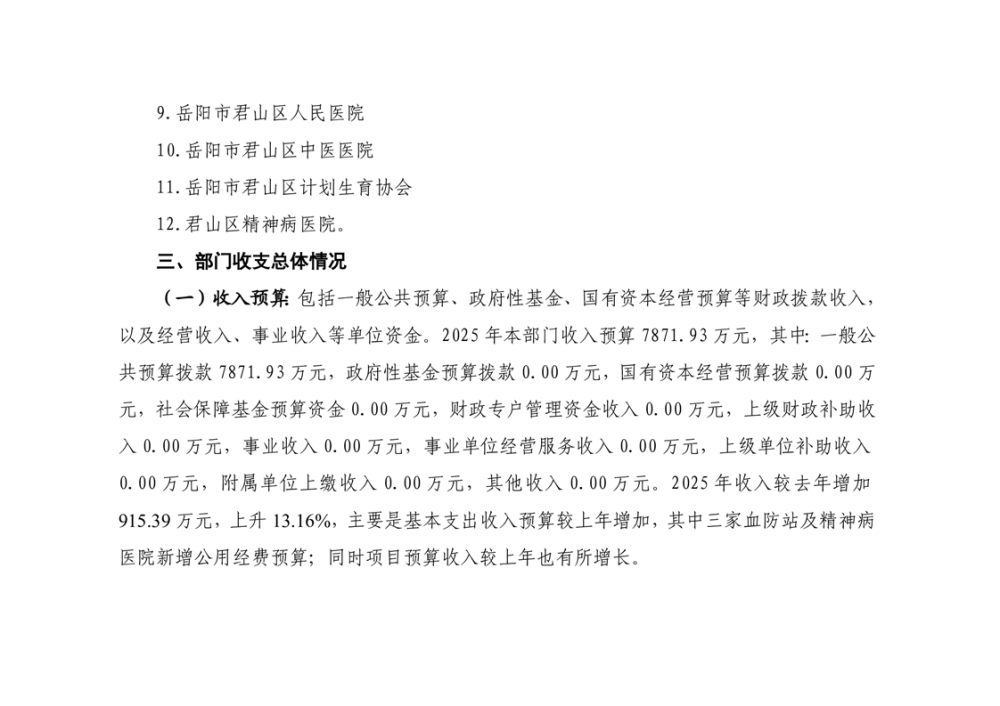 2025年岳陽市君山區(qū)衛(wèi)生健康局(部門)預算公開