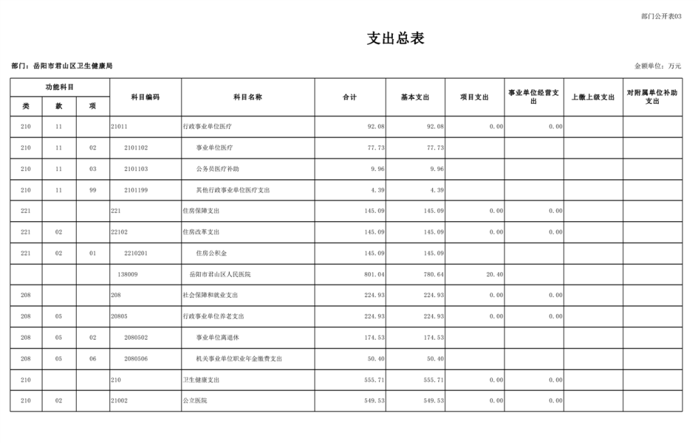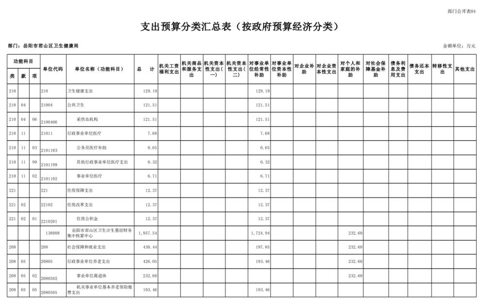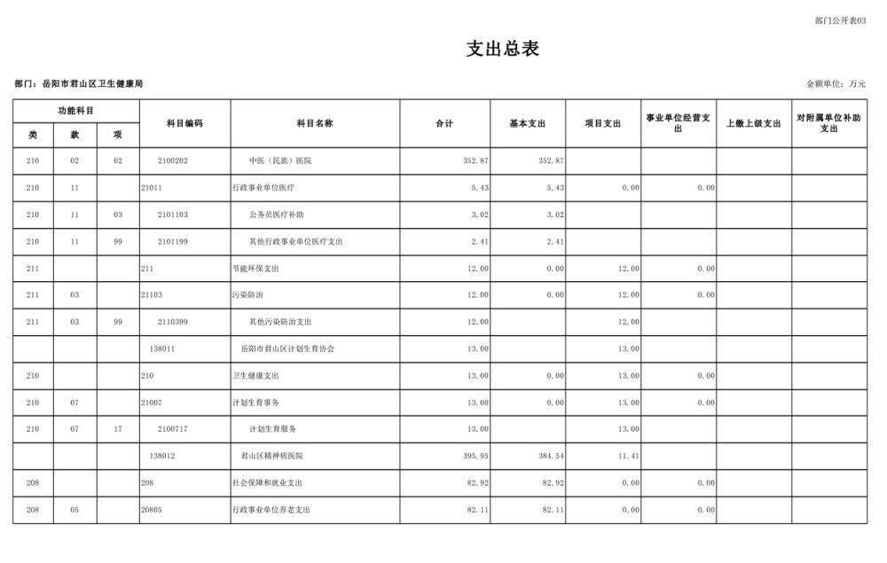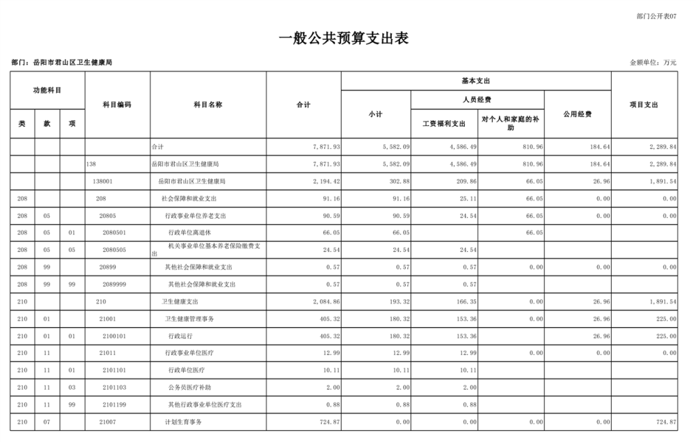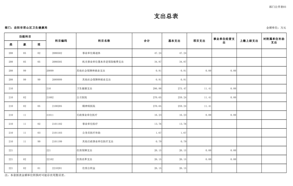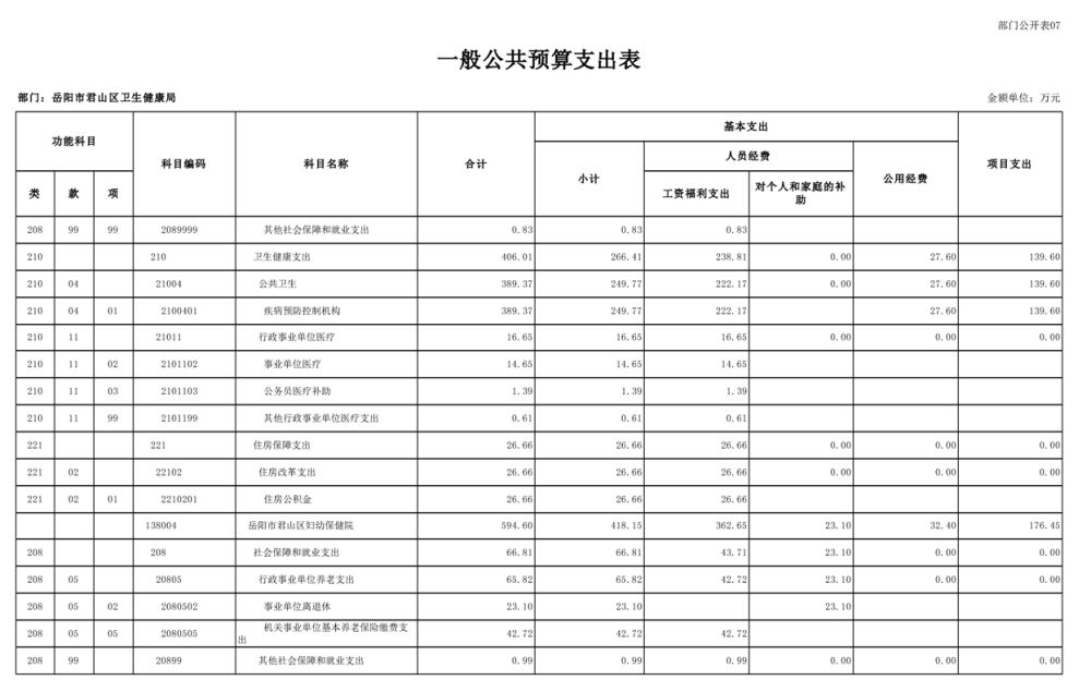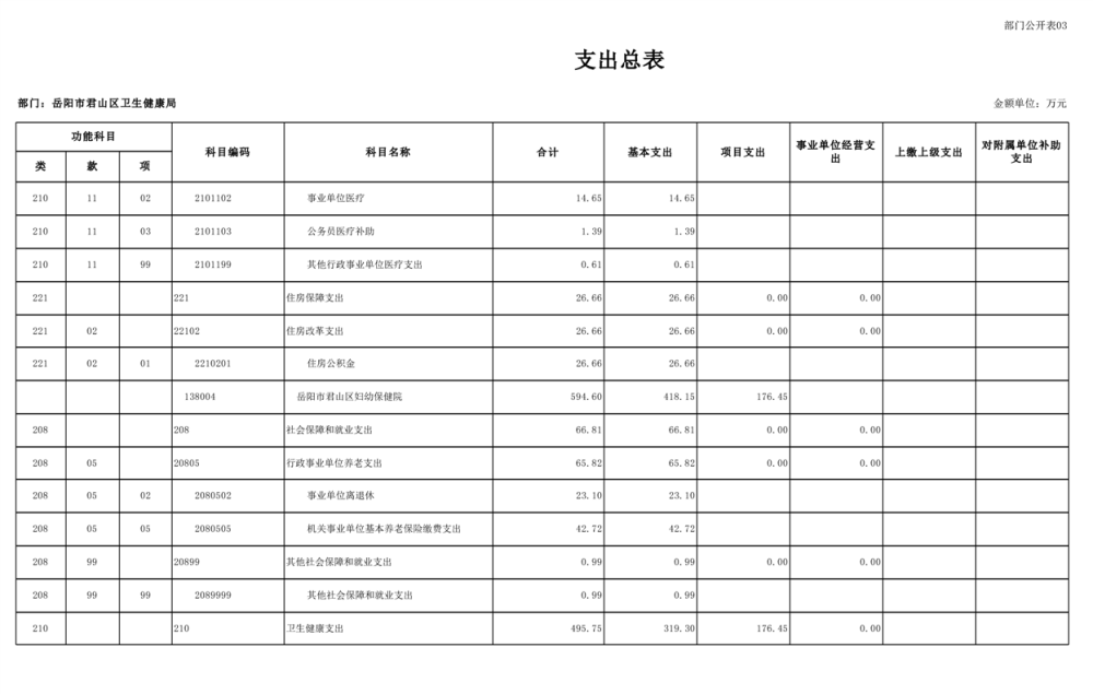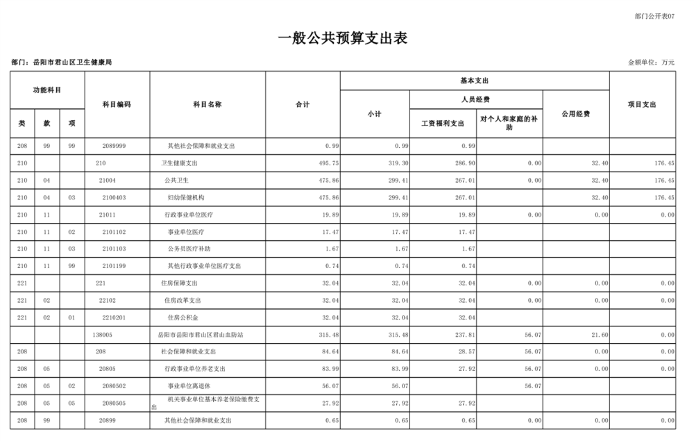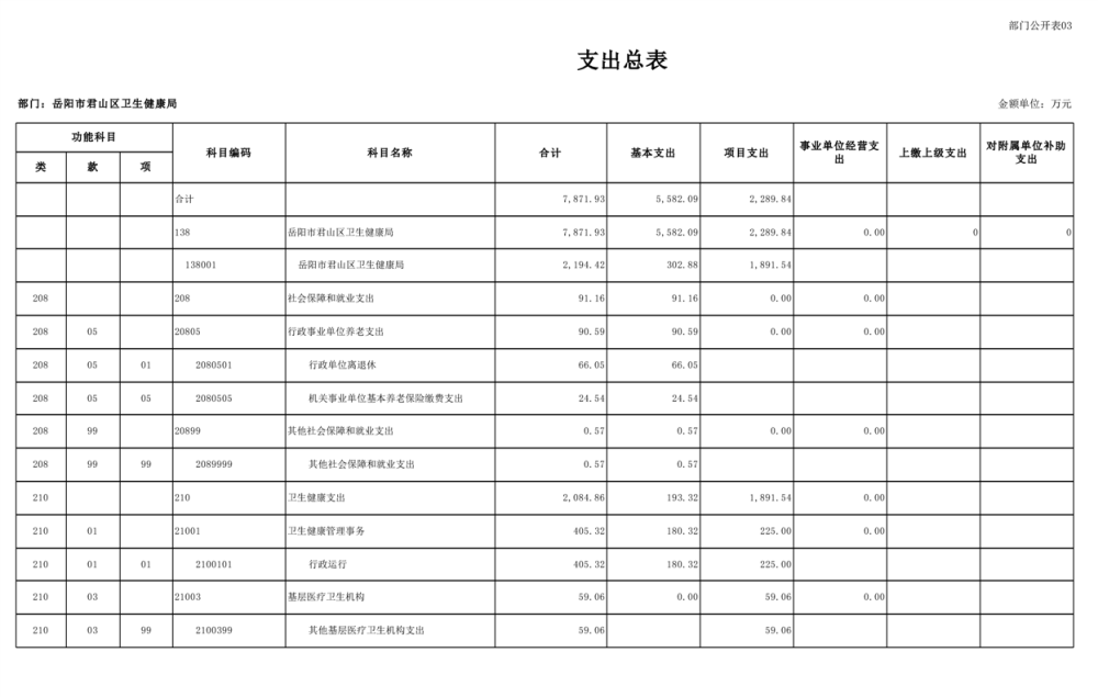 2025年岳陽市君山區(qū)衛(wèi)生健康局(部門)預算公開