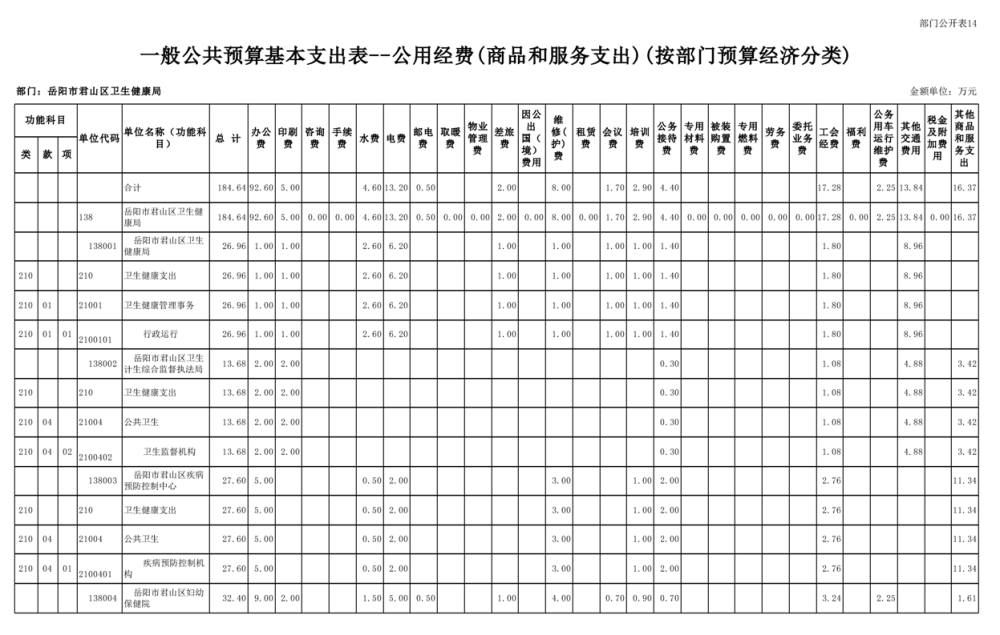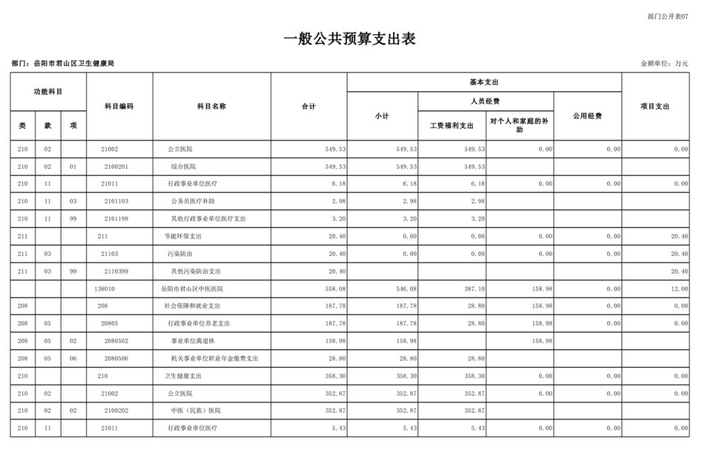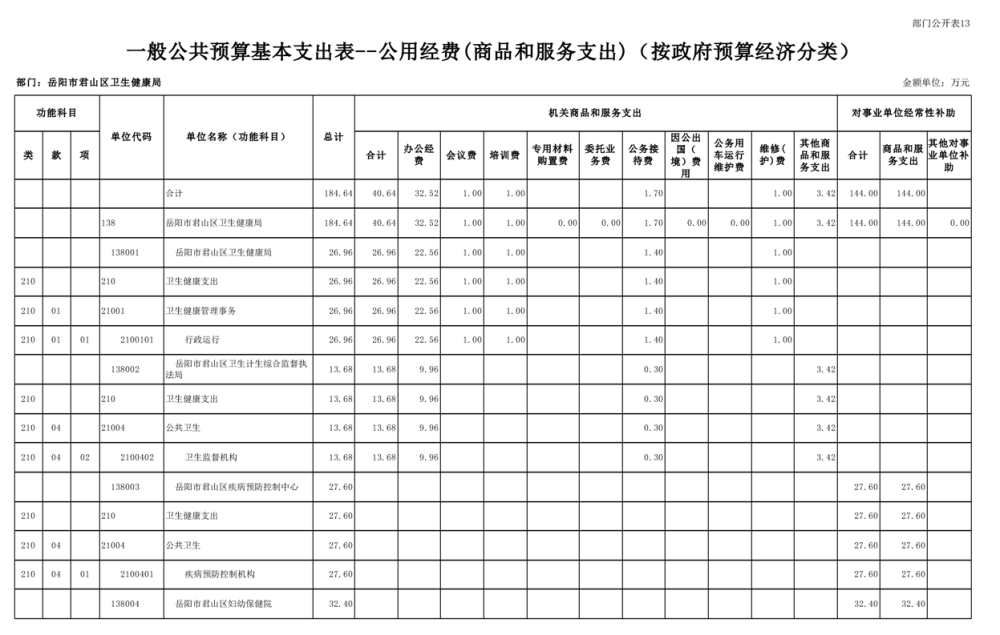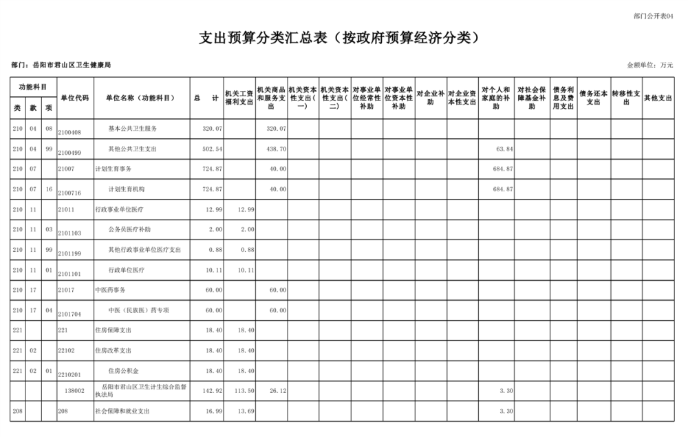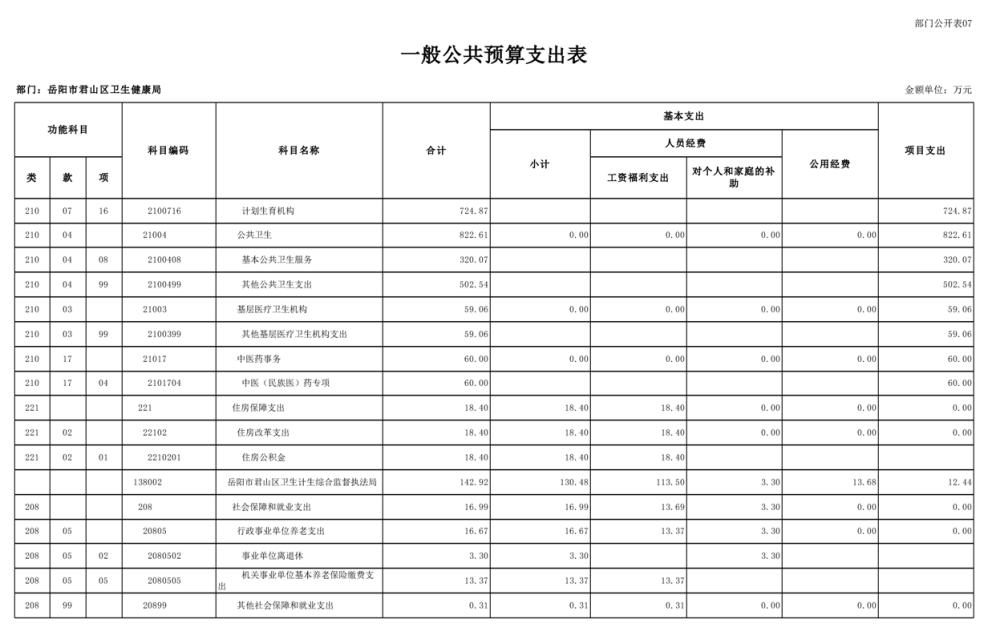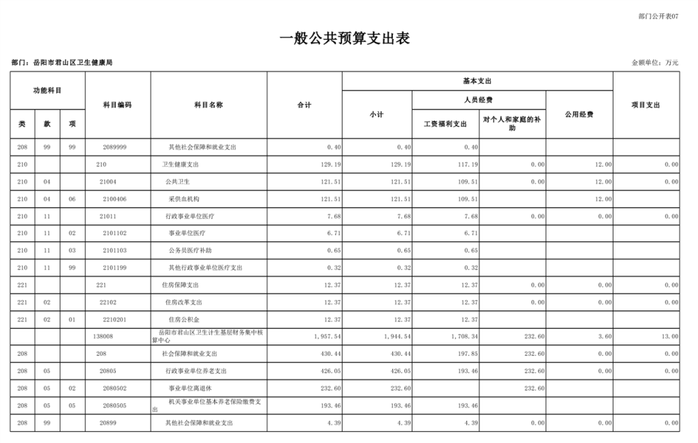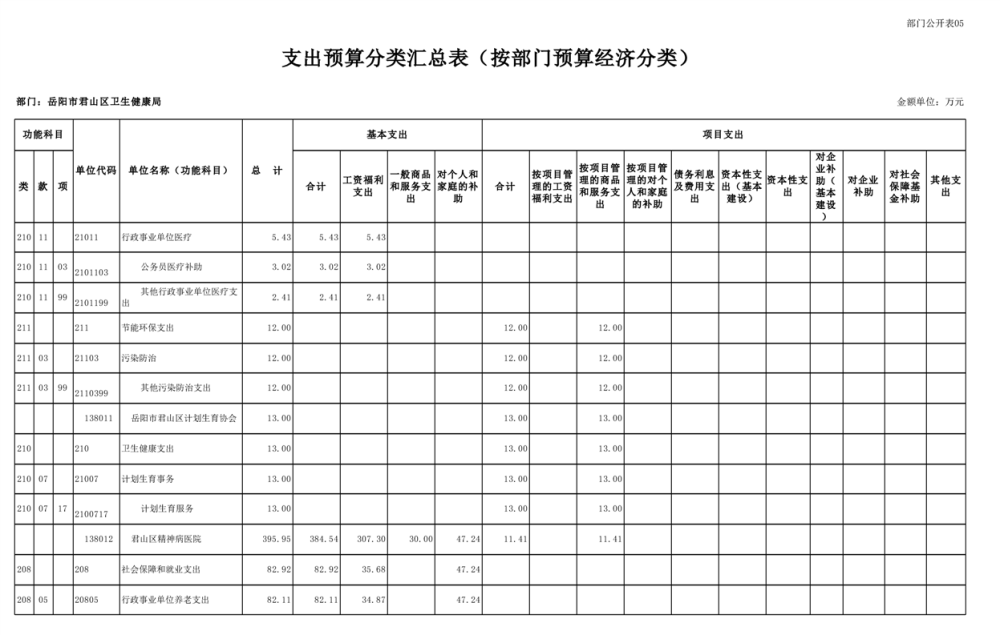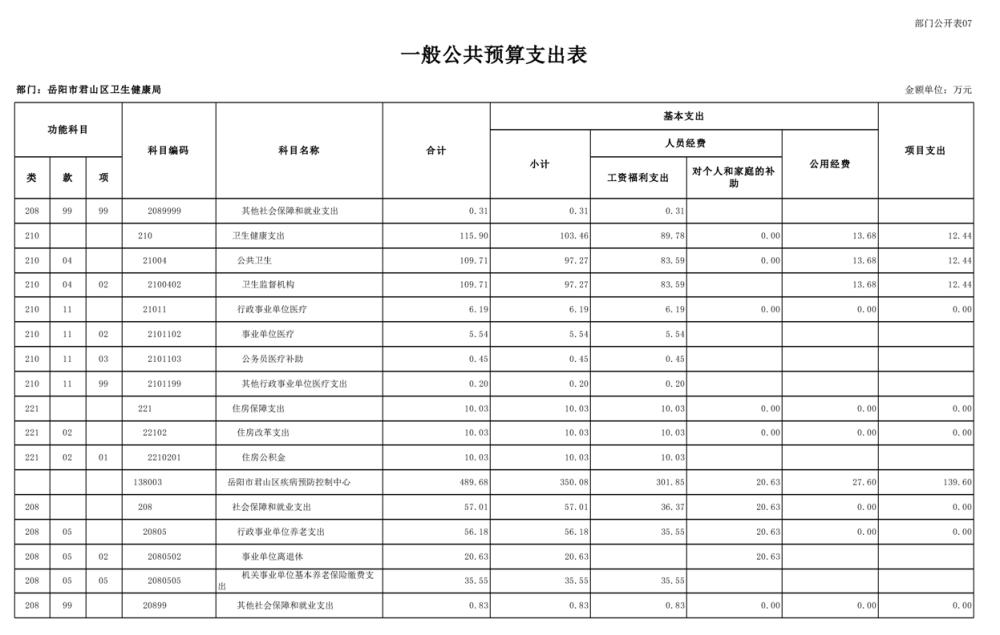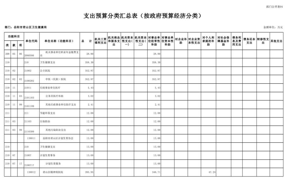 2025年岳陽市君山區(qū)衛(wèi)生健康局(部門)預算公開