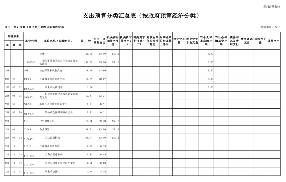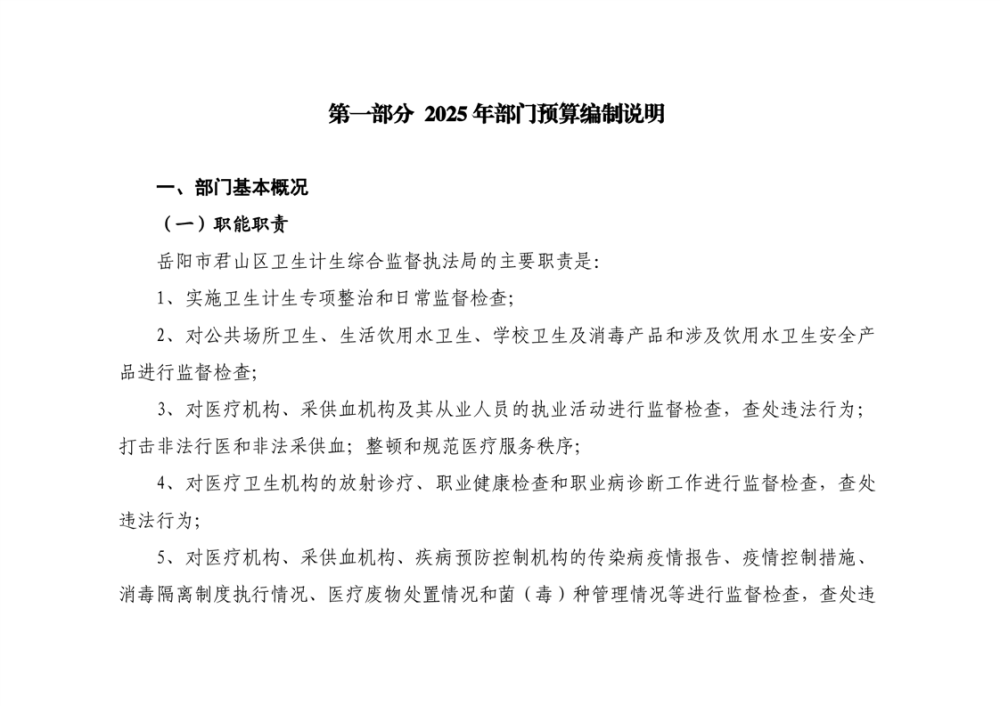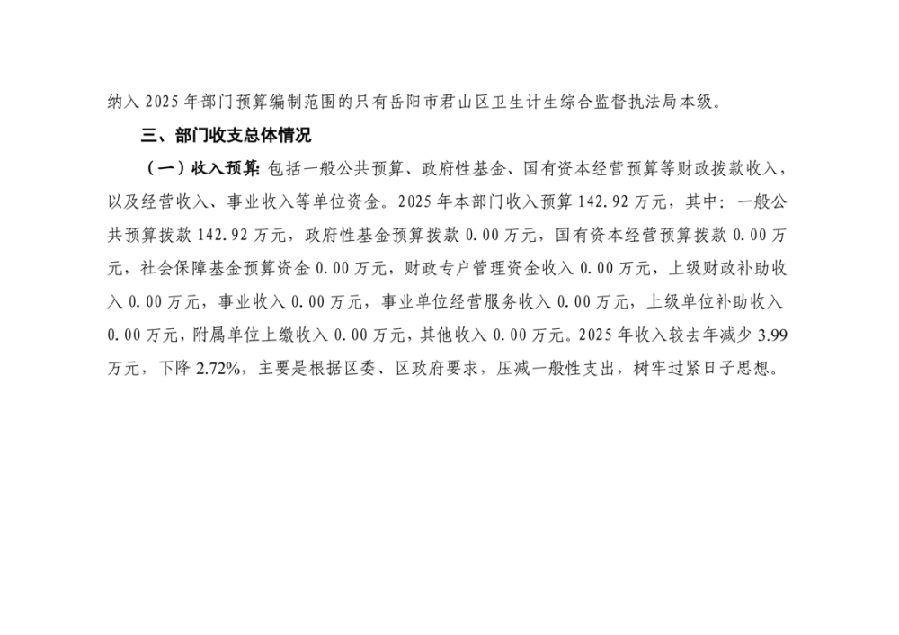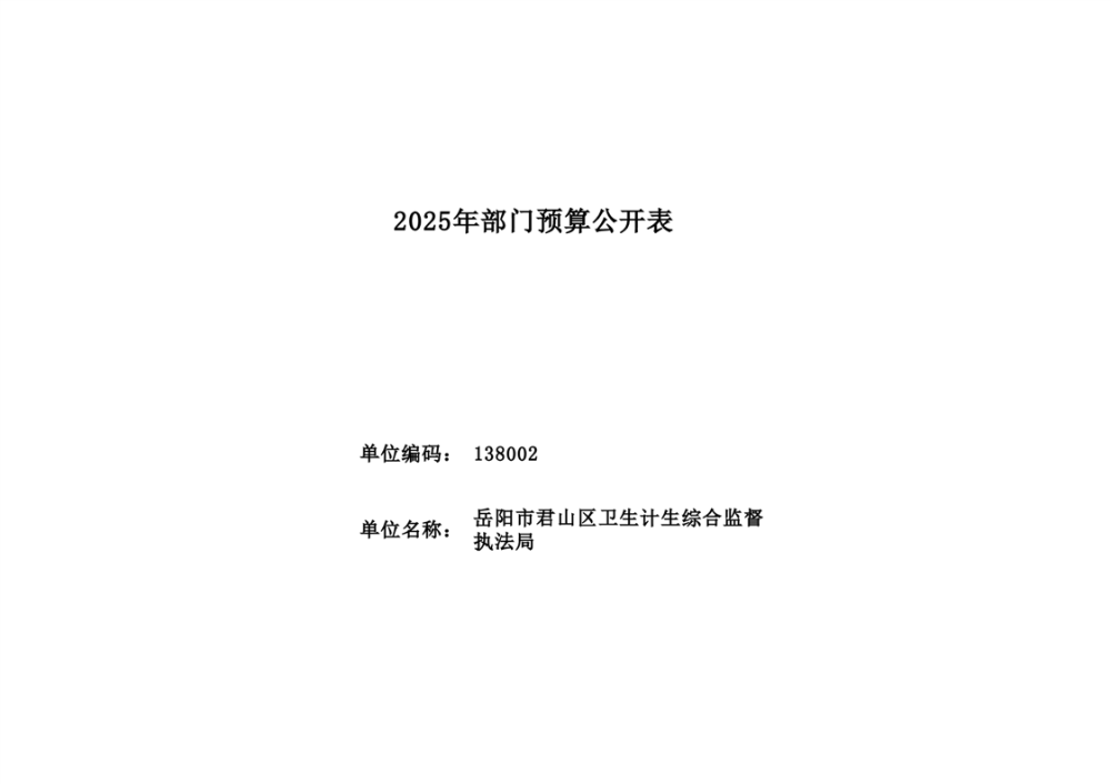 2025年岳陽市君山區(qū)衛(wèi)生計(jì)生綜合監(jiān)督執(zhí)法局部門預(yù)算公開