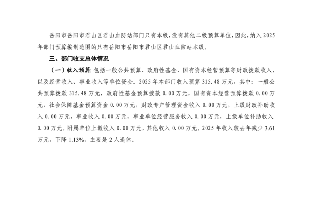 2025年岳陽市君山區(qū)君山血防站部門預算公開