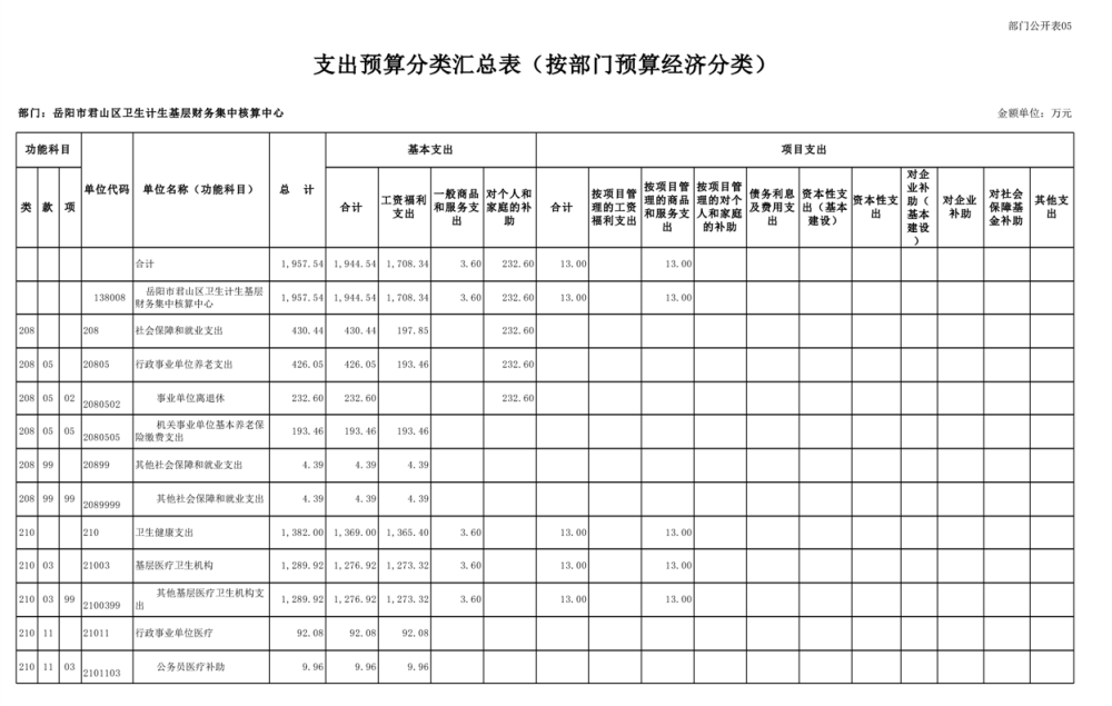 2025年岳陽(yáng)市君山區(qū)衛(wèi)生計(jì)生基層財(cái)務(wù)集中核算中心部門預(yù)算公開(kāi)