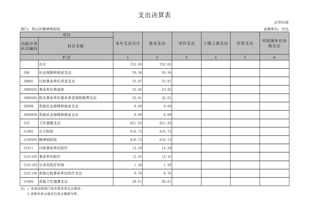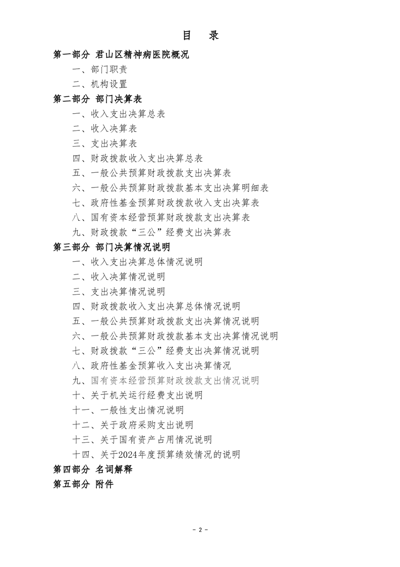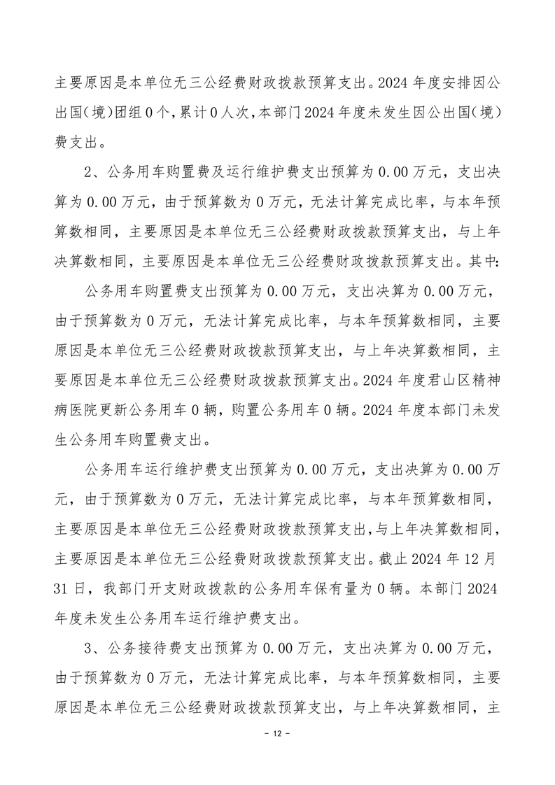 2024年度君山區(qū)精神病醫(yī)院部門決算公開