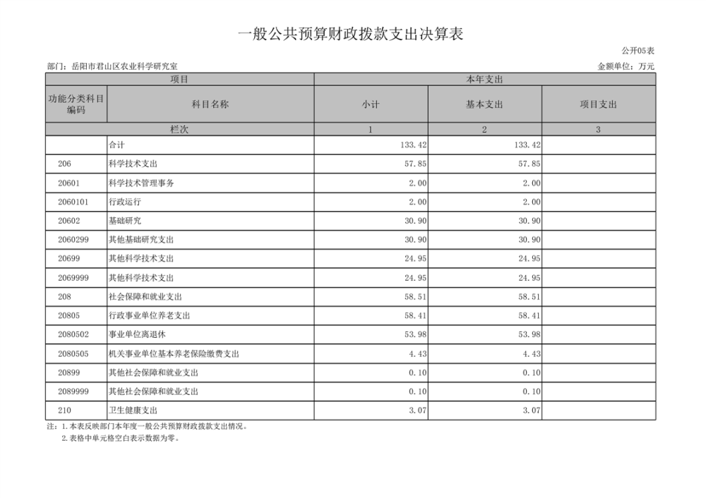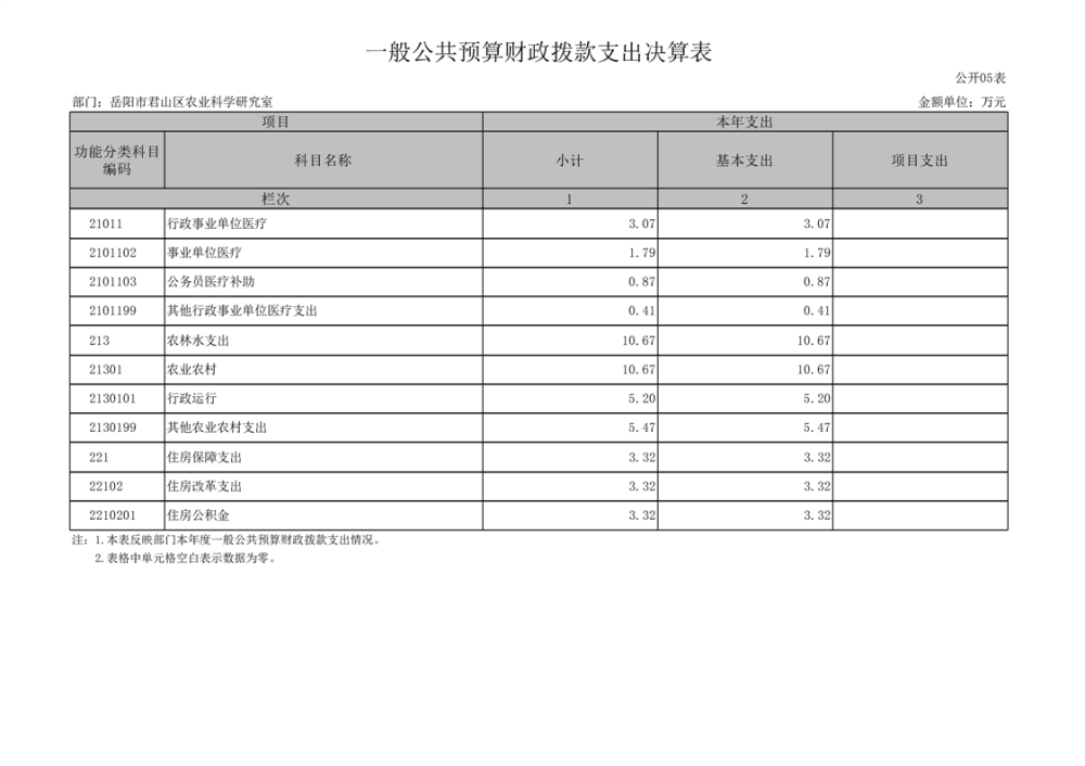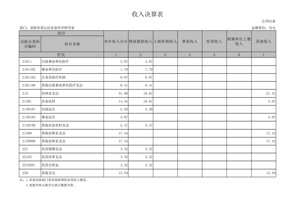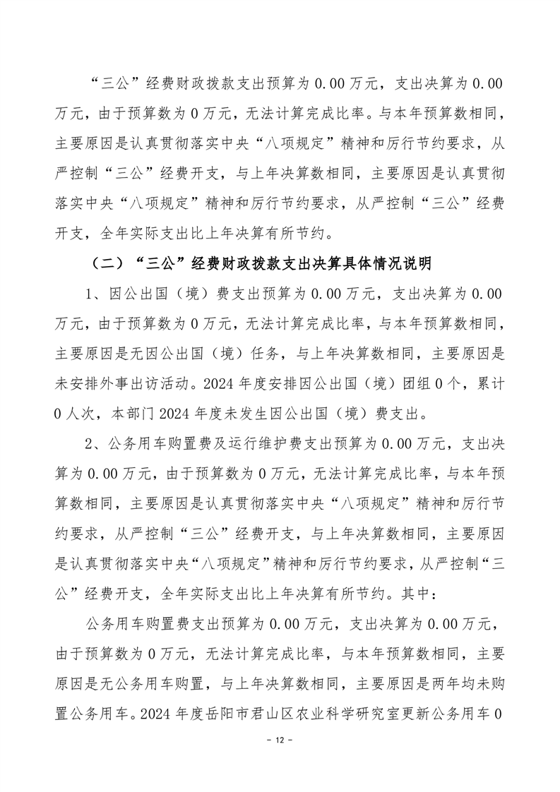 2024年度岳陽(yáng)市君山區(qū)農(nóng)業(yè)科學(xué)研究室部門(mén)決算公開(kāi)