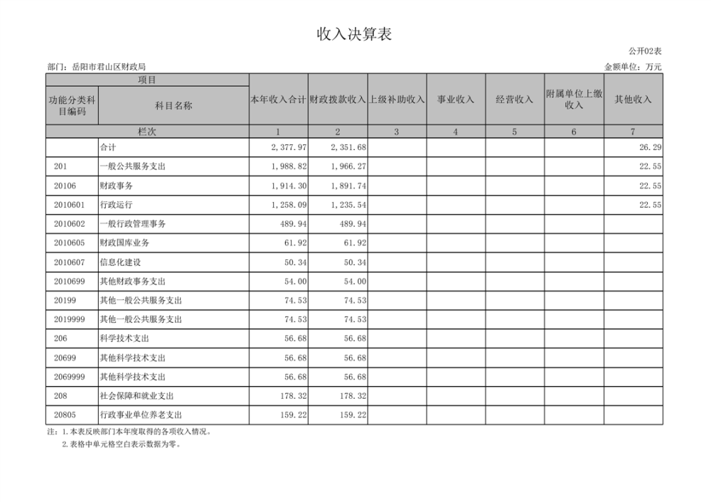 2024年度岳陽市君山區(qū)財政局(部門)決算公開