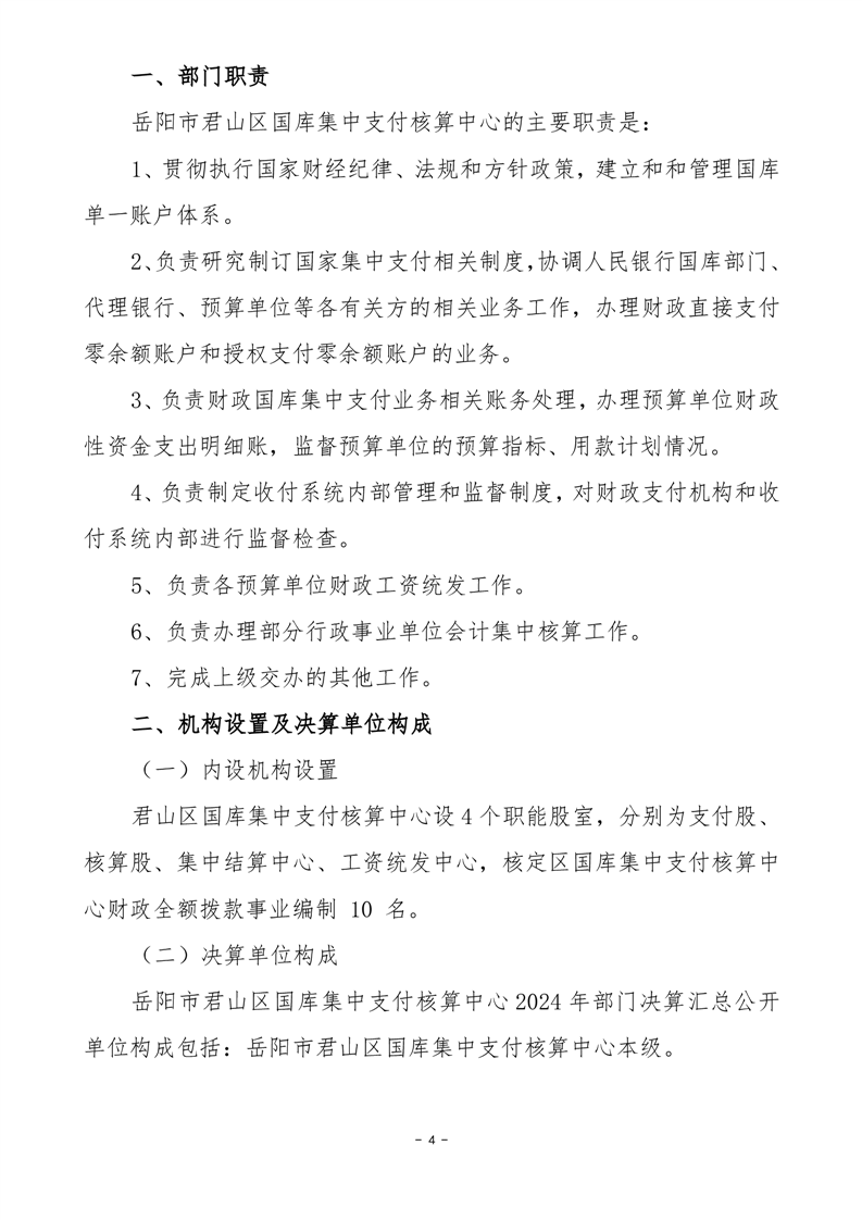 2024年度岳陽市君山區(qū)國庫集中支付核算中心部門決算公開