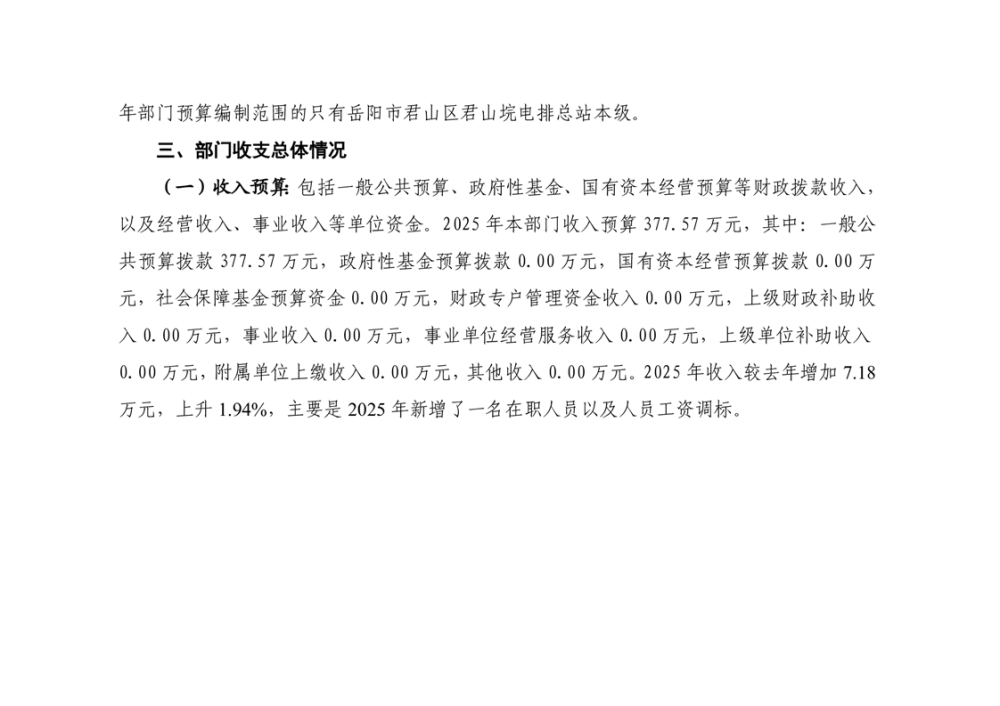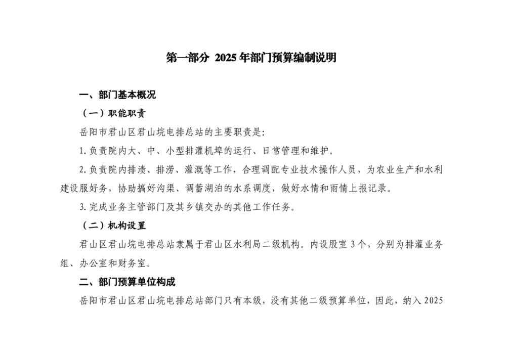 2025年岳陽市君山區(qū)君山垸電排總站部門預(yù)算公開
