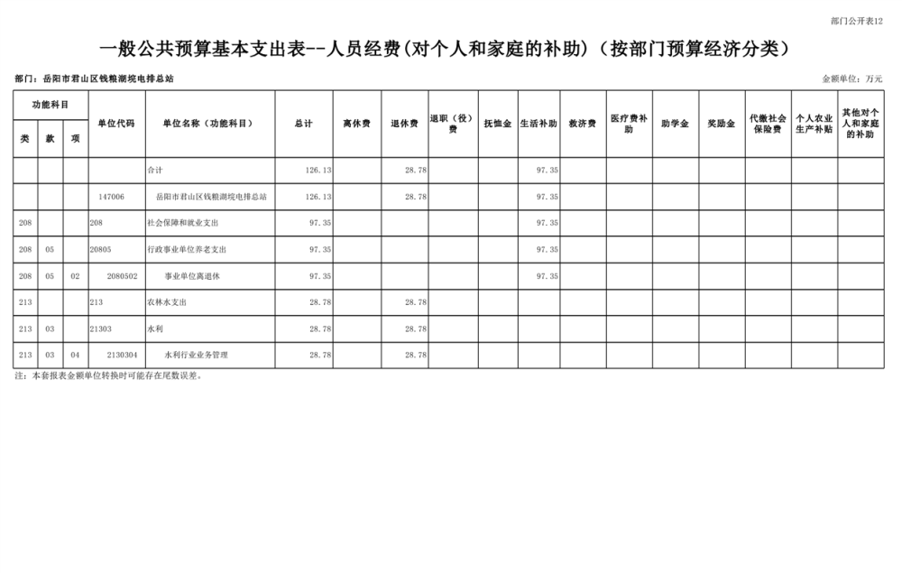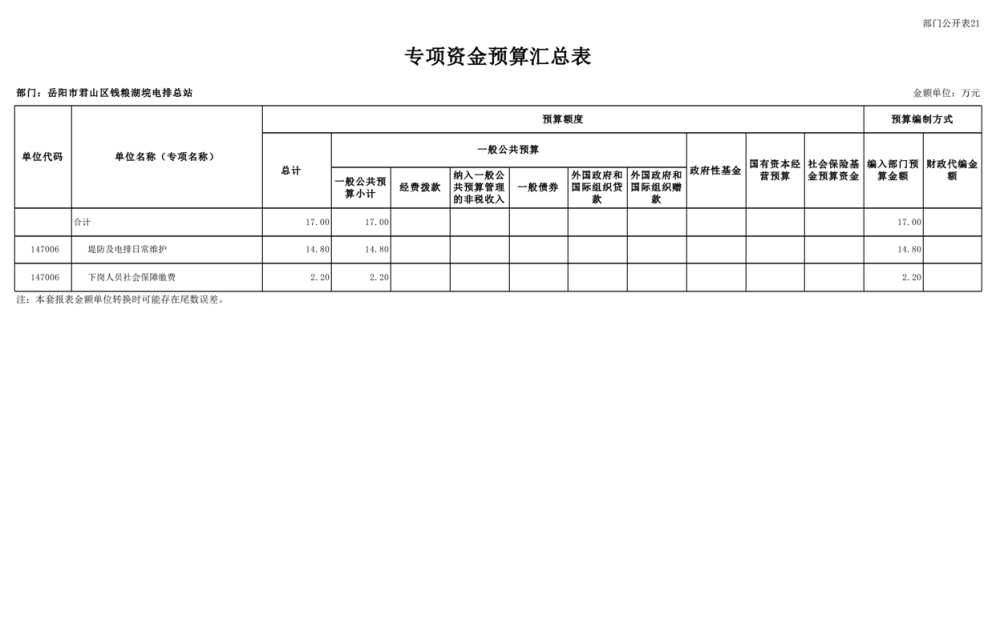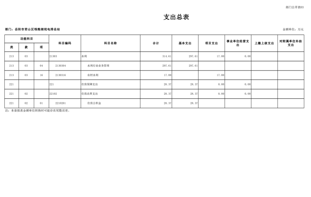 2025年岳陽市君山區(qū)錢糧湖垸電排總站部門預(yù)算公開